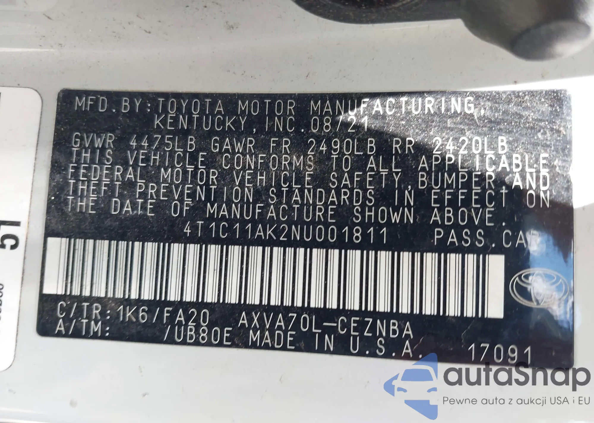 • VIN 4T1C11AK2NU001811