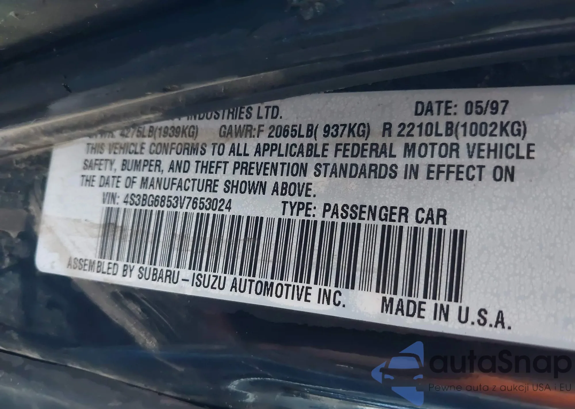 • VIN 4S3BG6853V7653024