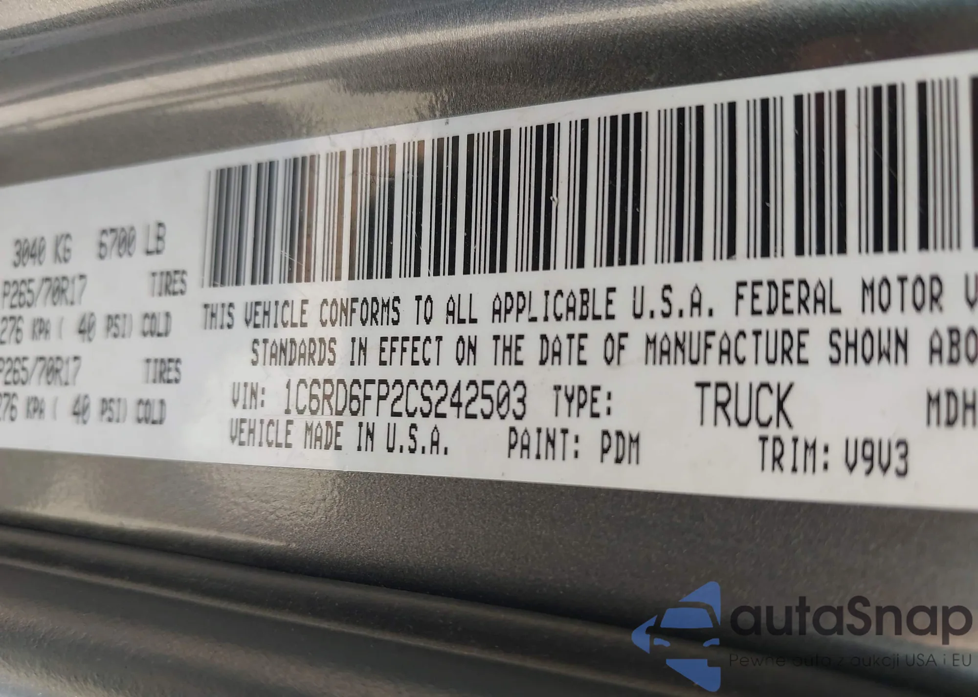 • VIN 1C6RD6FP2CS242503