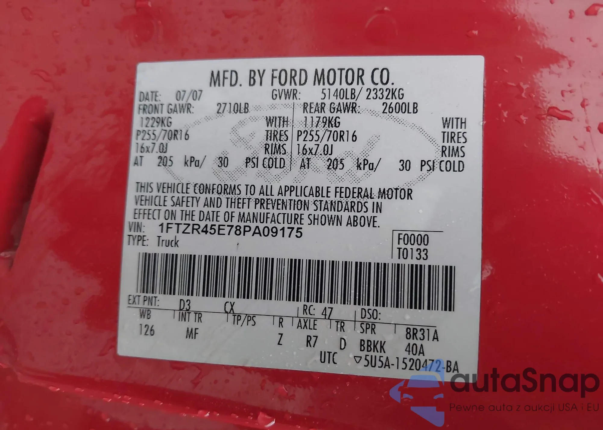 LOT: 41806426 VIN: 1FTZR45E78PA09175