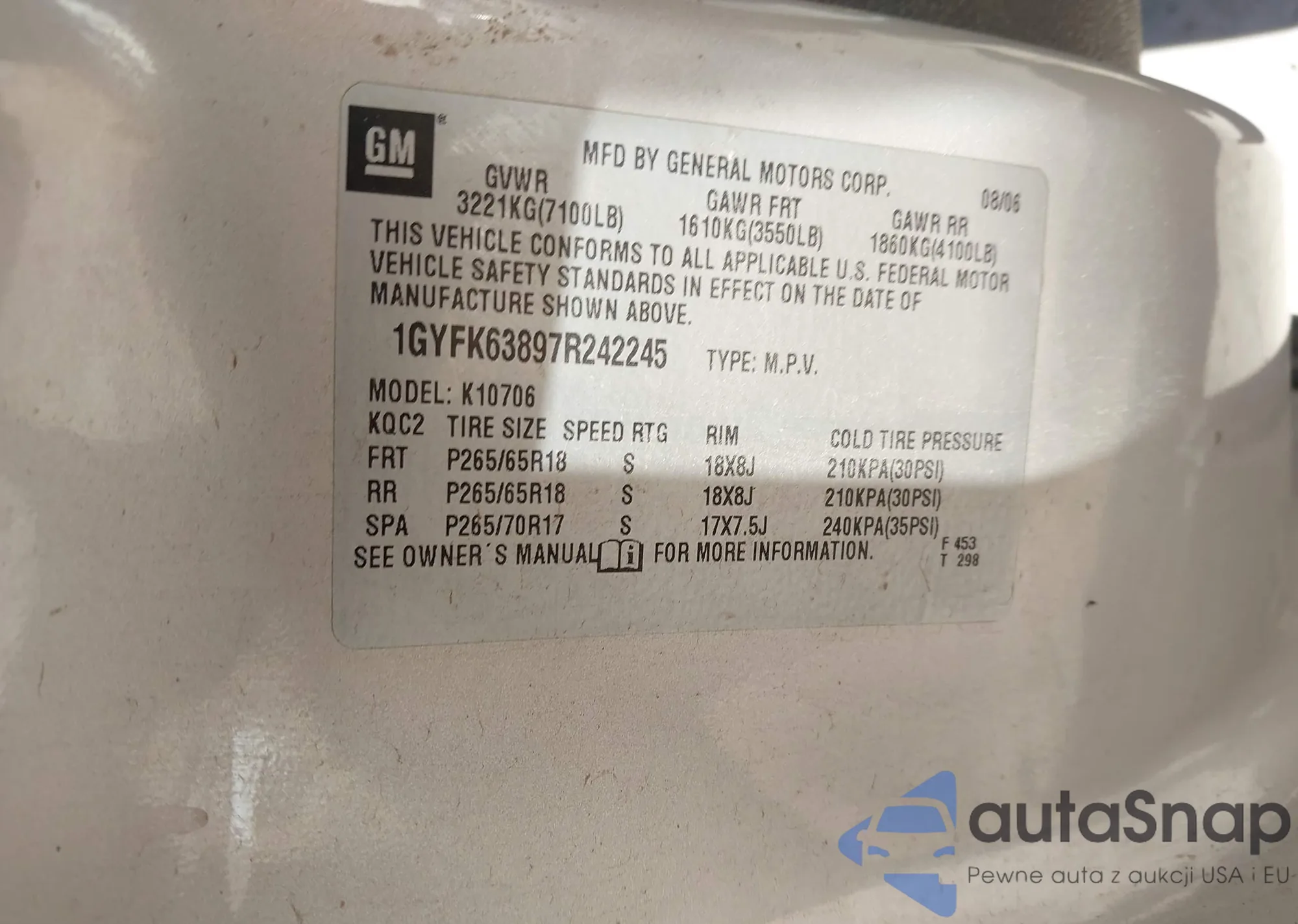 LOT: 41842588 VIN: 1GYFK63897R242245