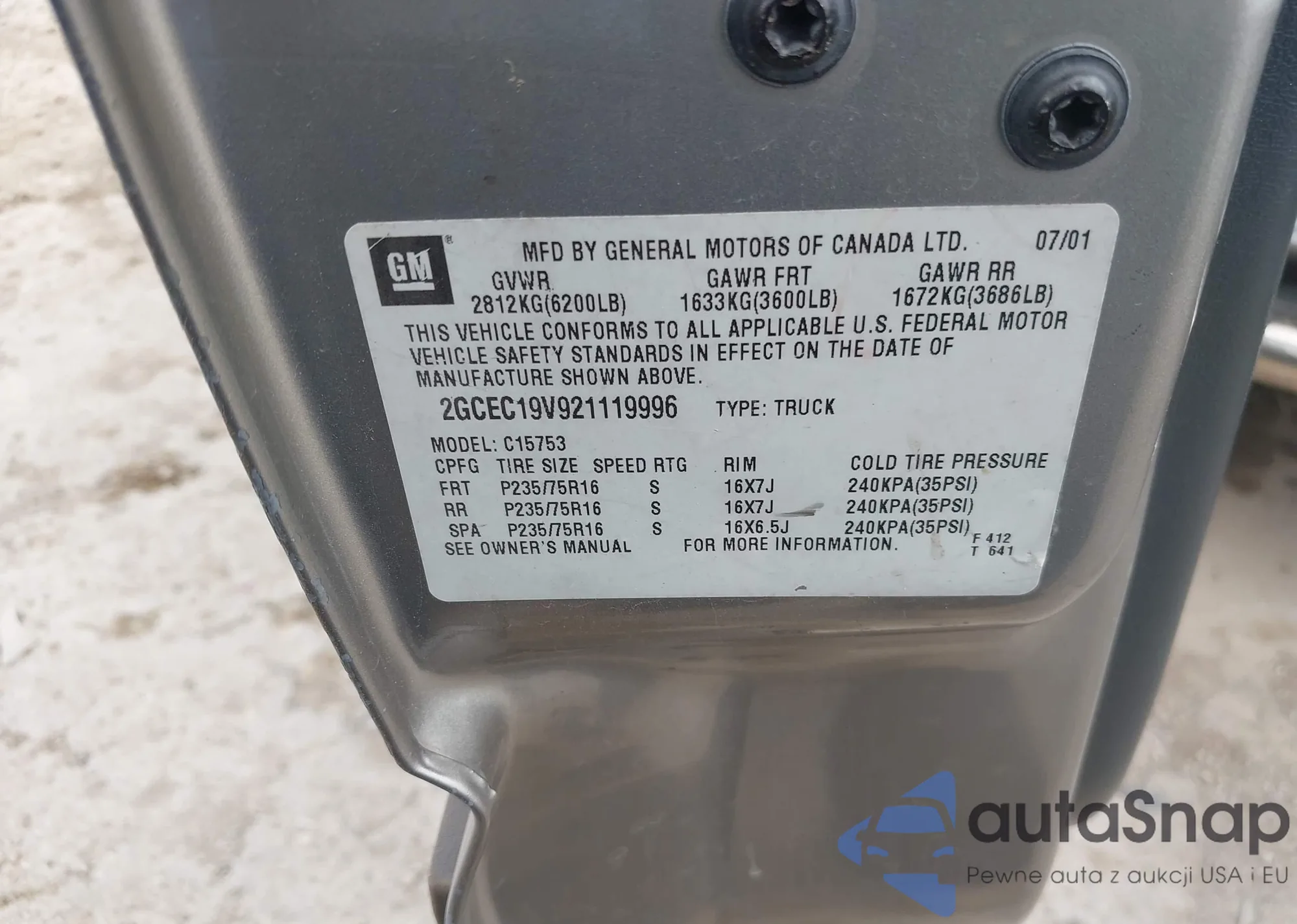 • VIN 2GCEC19V921119996