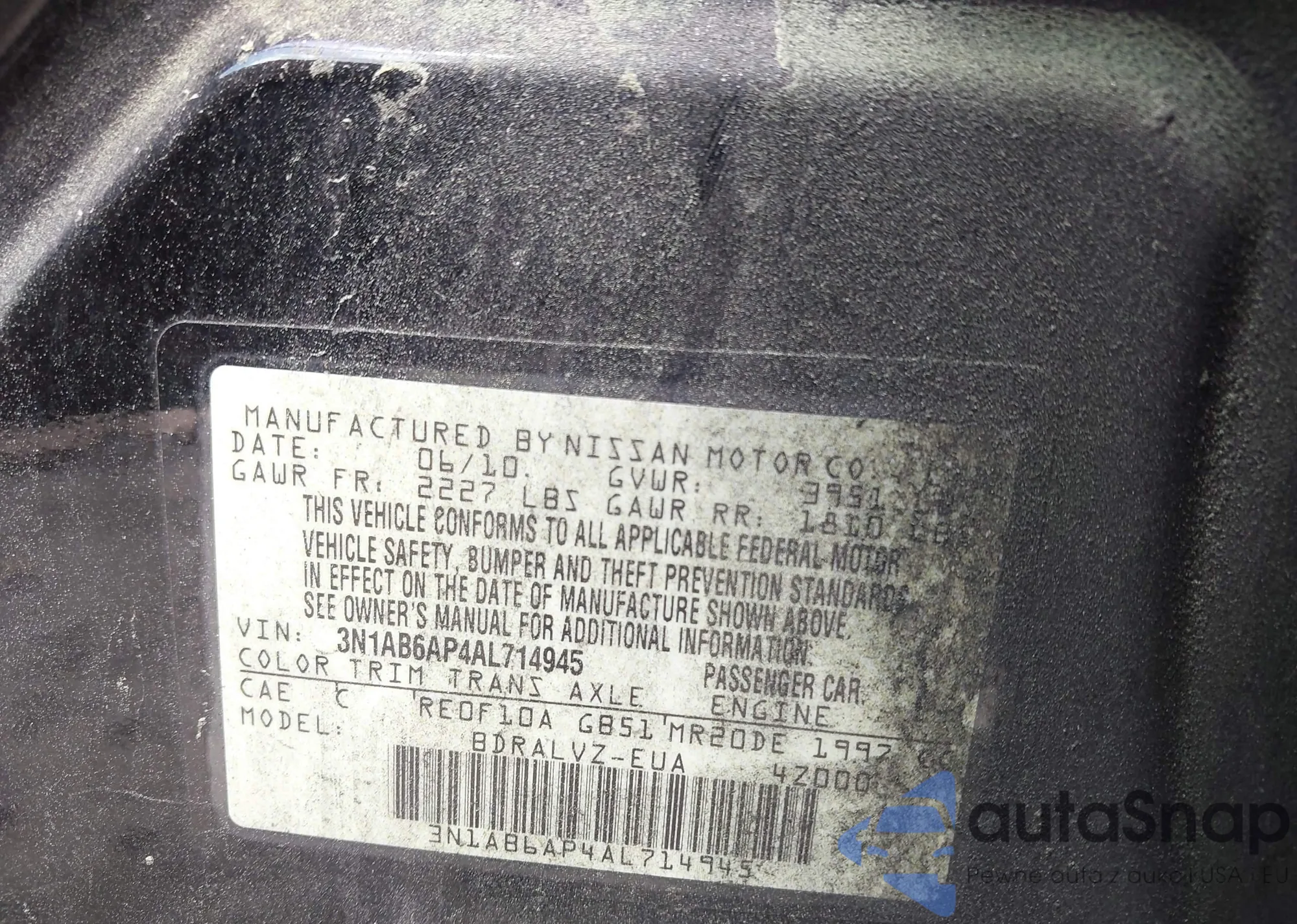 • VIN 3N1AB6AP4AL714945