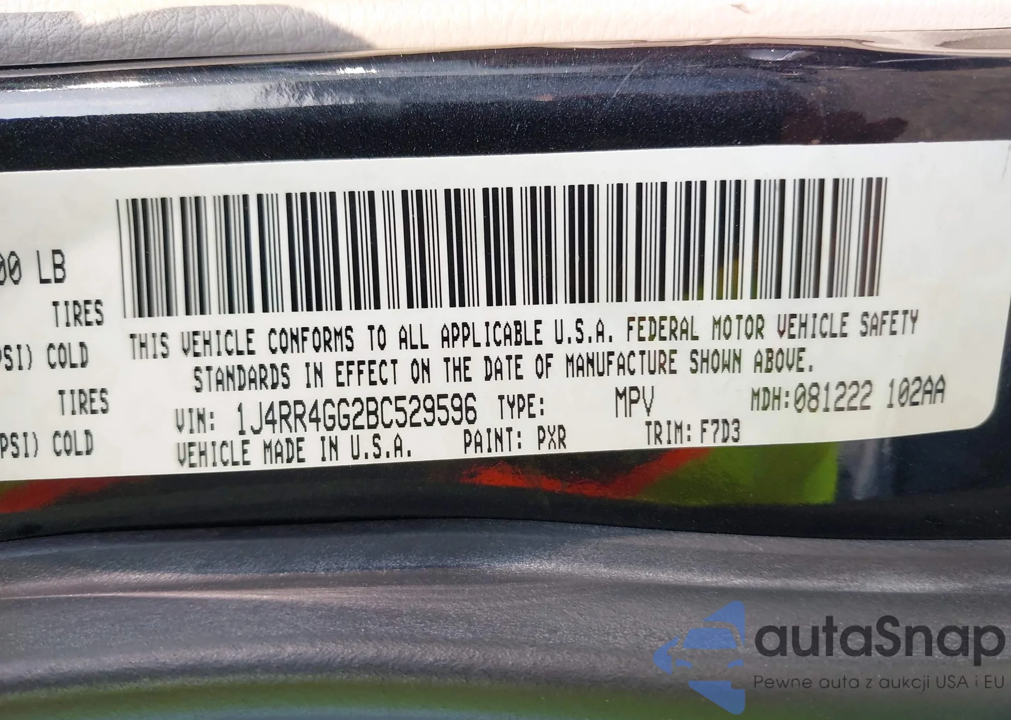• VIN 1J4RR4GG2BC529596