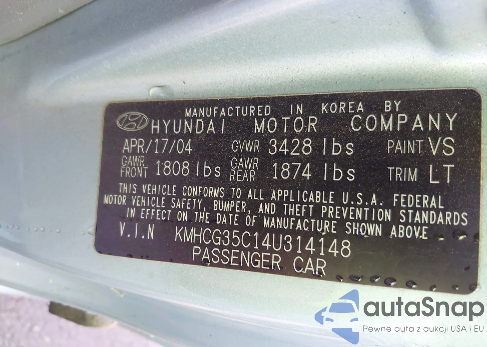 LOT: 40826798 VIN: KMHCG35C14U314148
