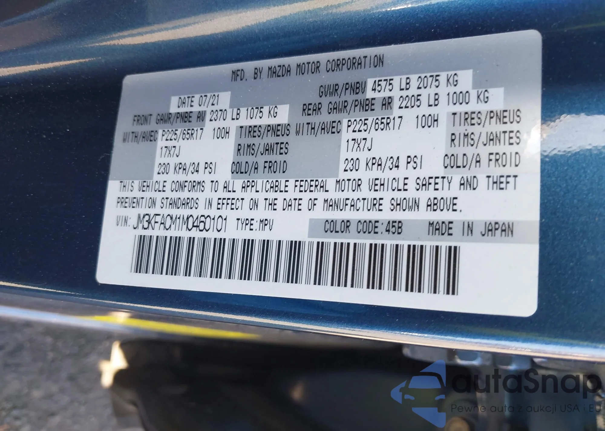 LOT: 42036117 VIN: JM3KFACM1M0460101