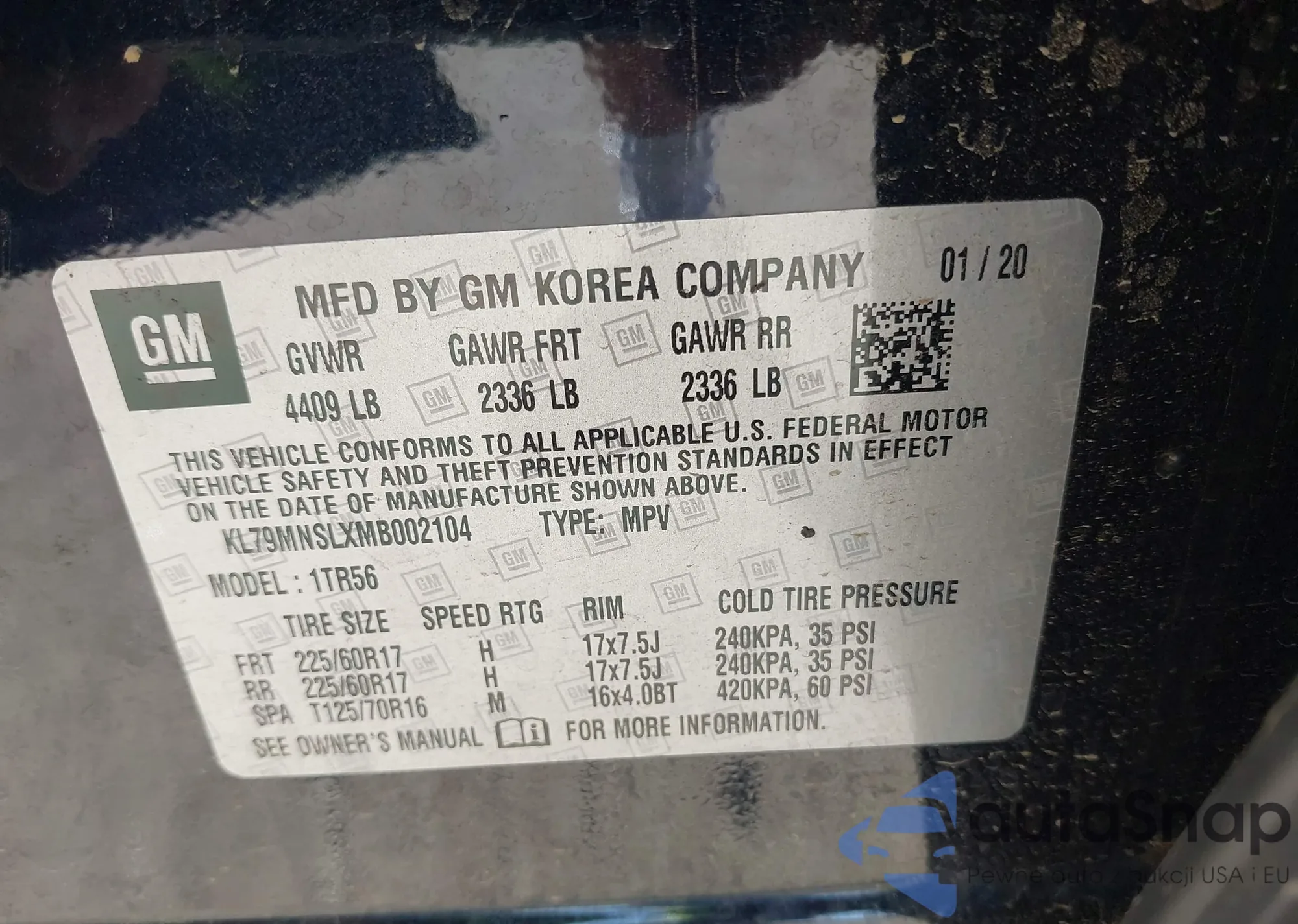 • VIN KL79MNSLXMB002104