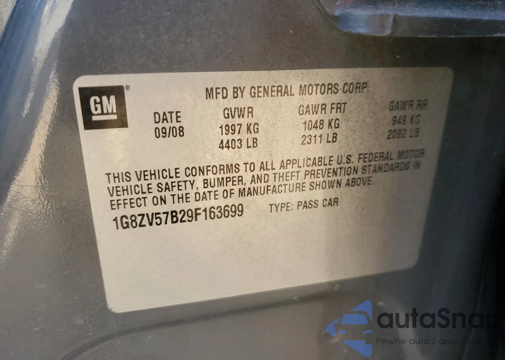 • VIN 1G8ZV57B29F163699