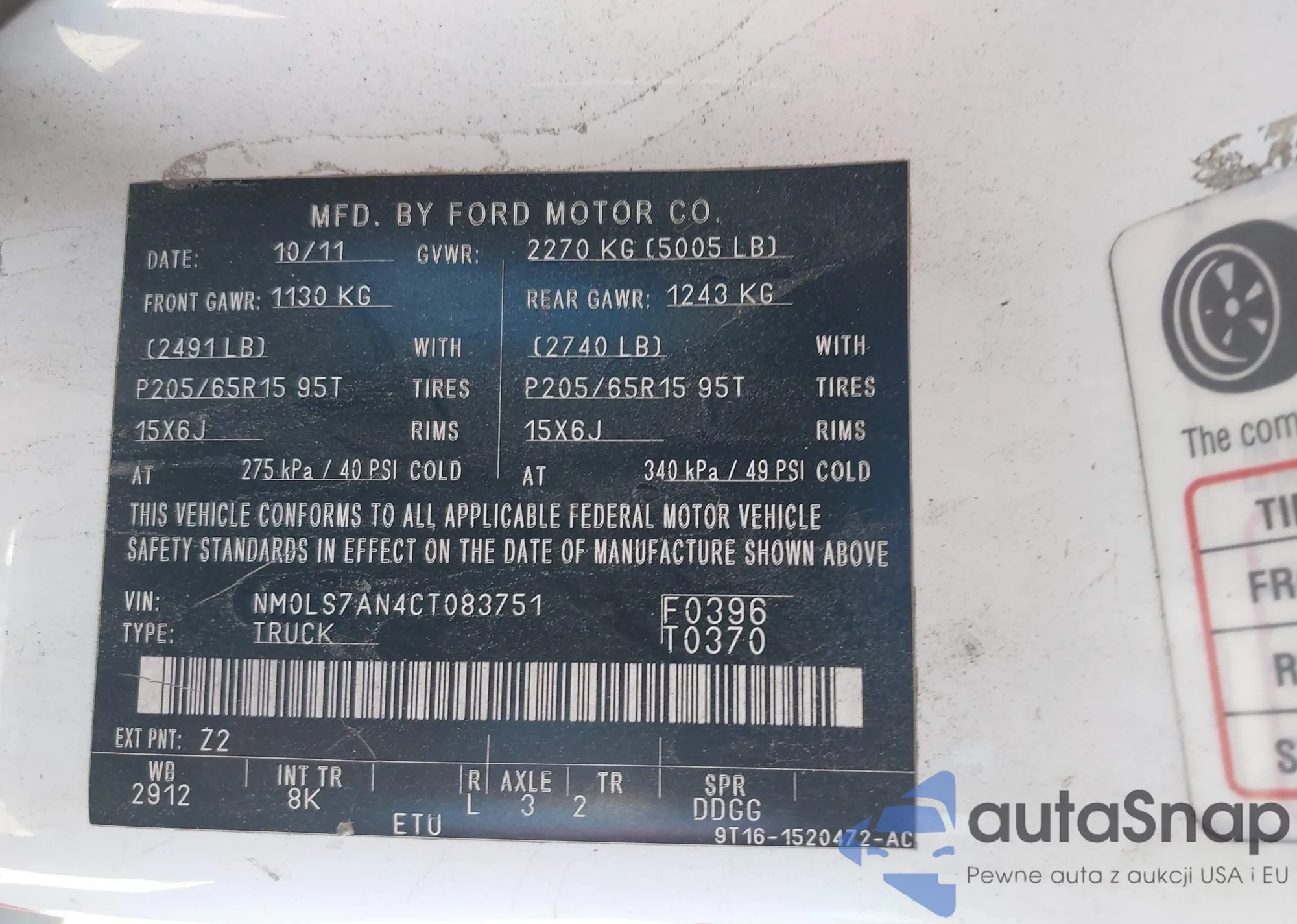 • VIN NM0LS7AN4CT083751