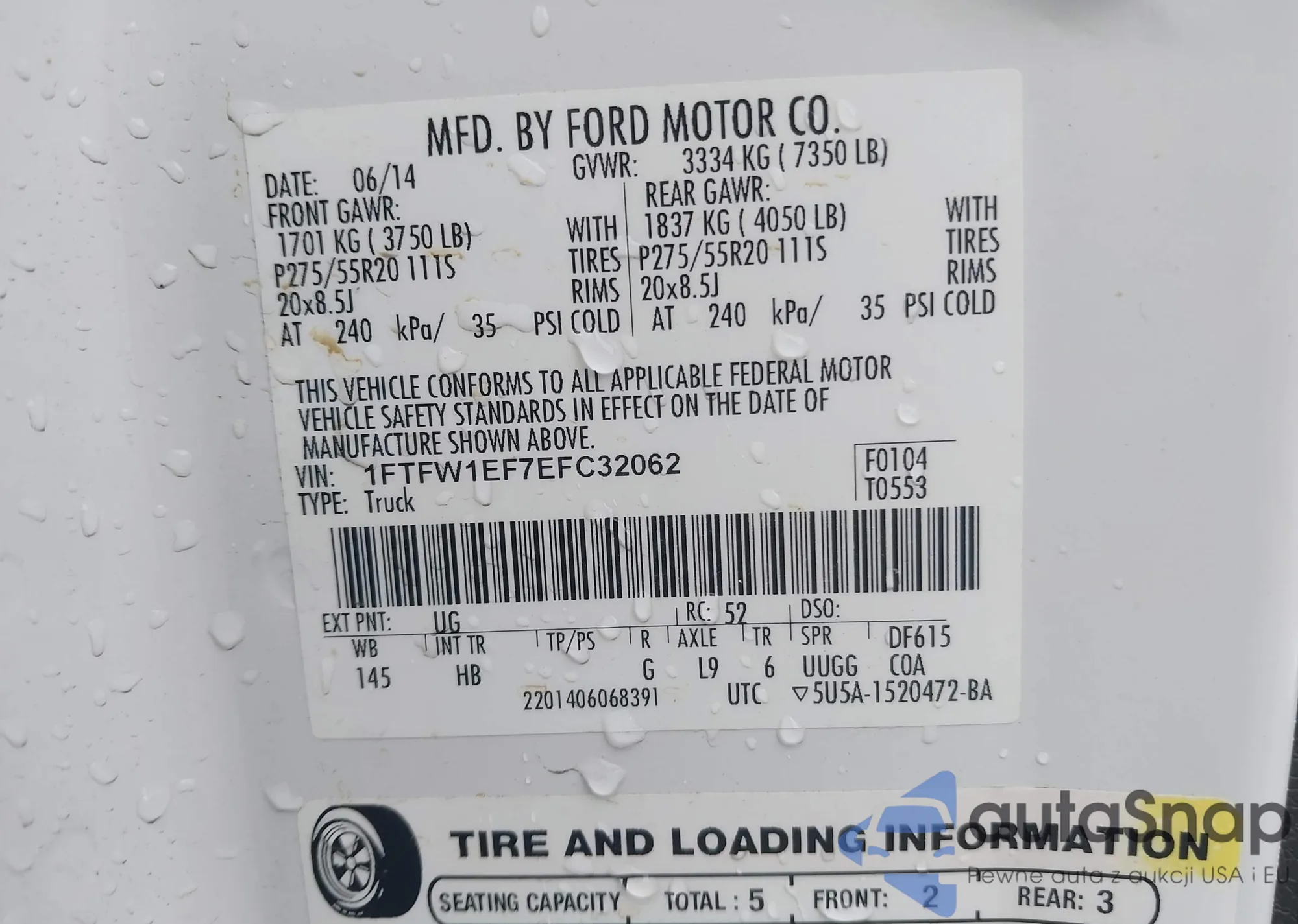 LOT: 39791664 VIN: 1FTFW1EF7EFC32062