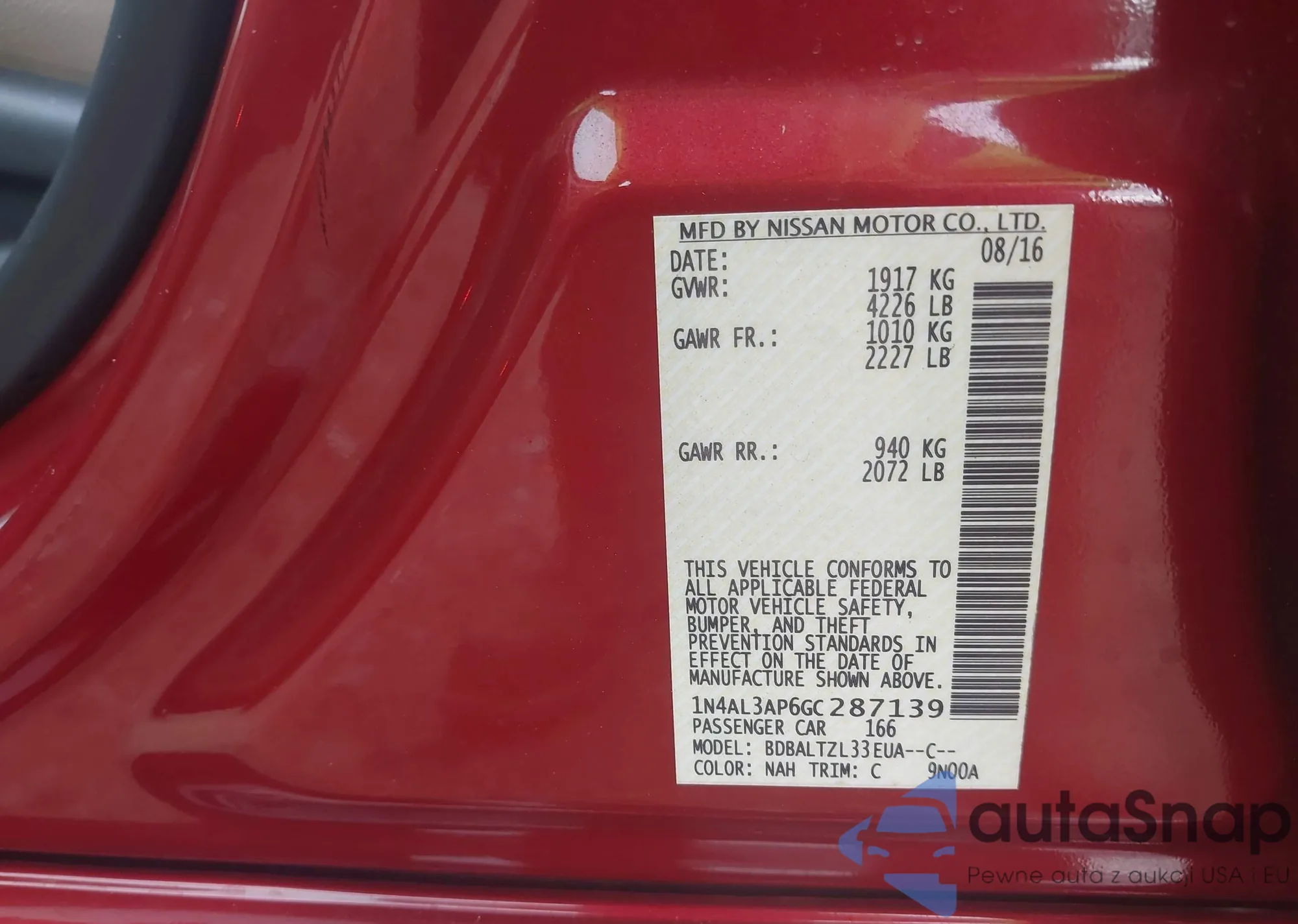 • VIN 1N4BL4CV6SN362215