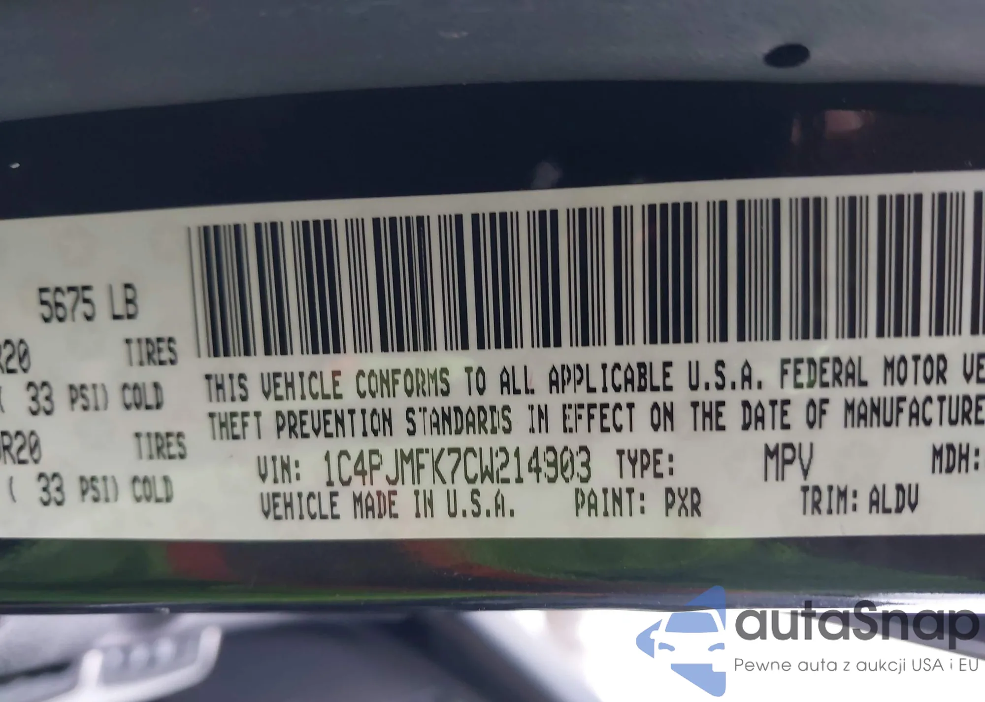 • VIN 2C3CDXAT0CH199106