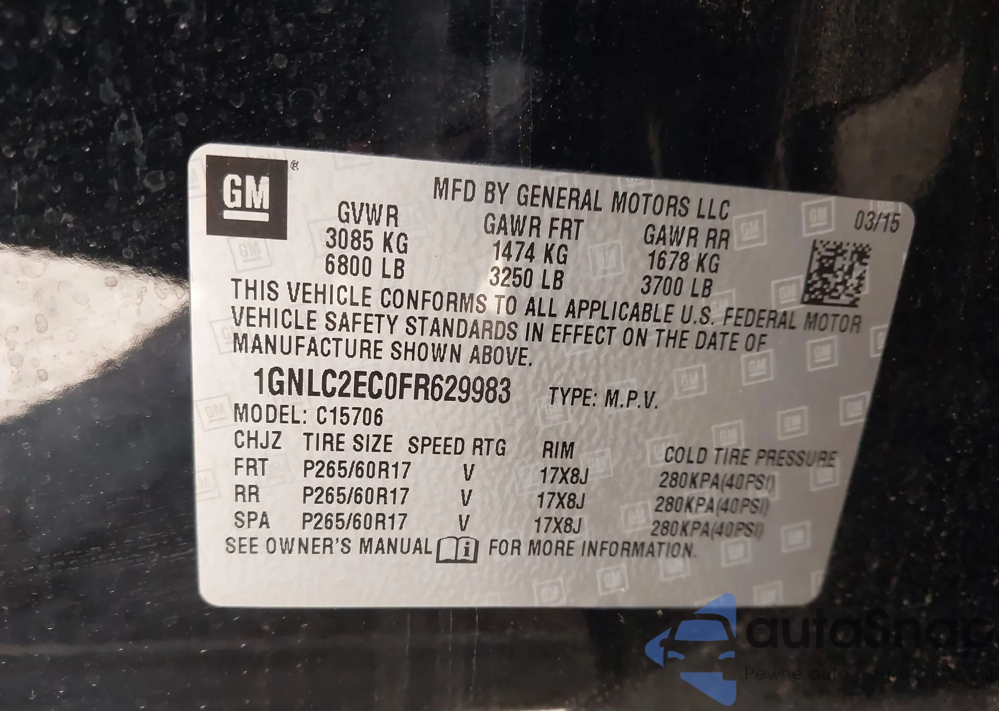 LOT: 41917584 VIN: 1GNLC2EC0FR629983
