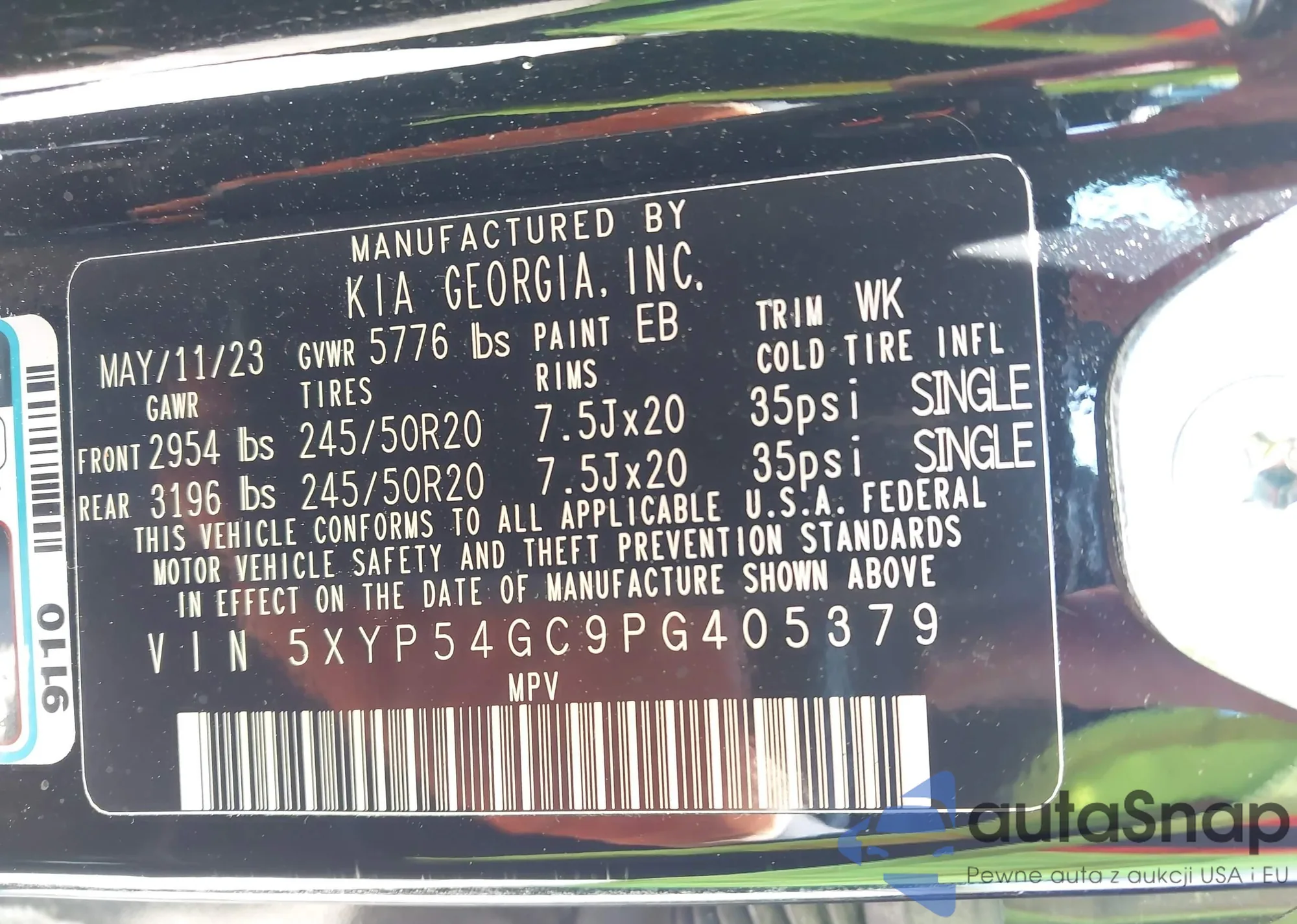 • VIN 5XYP54GC9PG405379