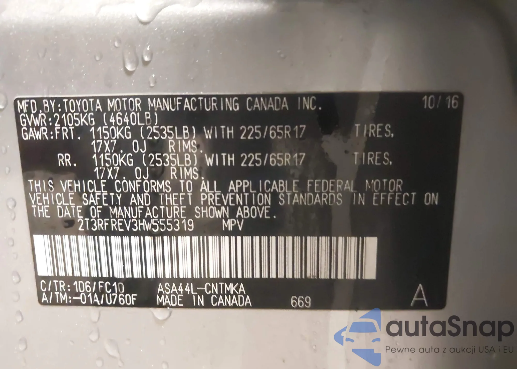 • VIN 2T3RFREV3HW555319
