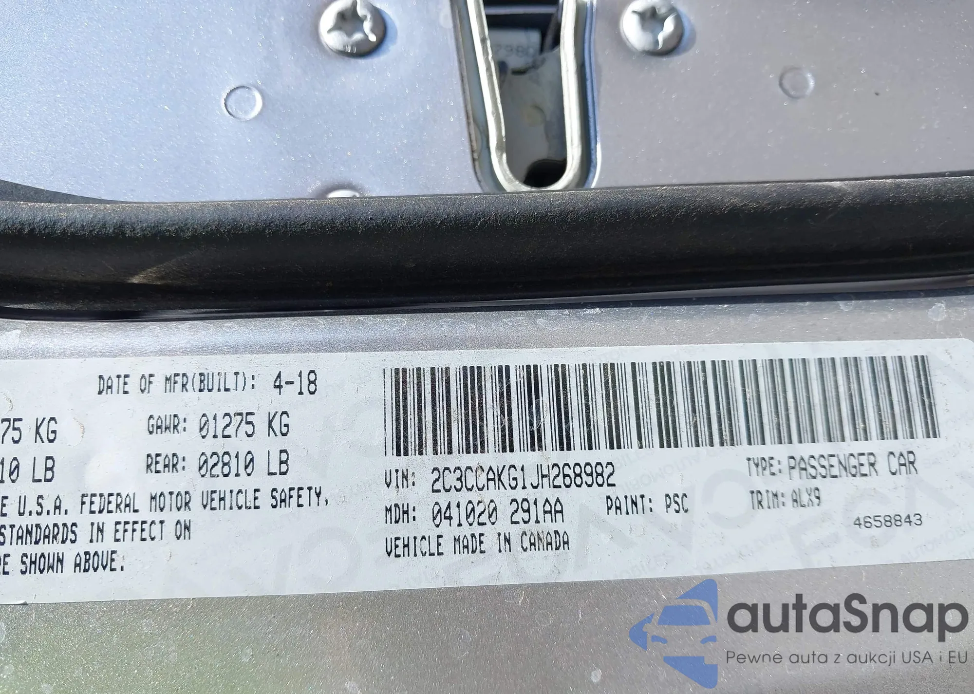 • VIN 2C3CCAKG1JH268982