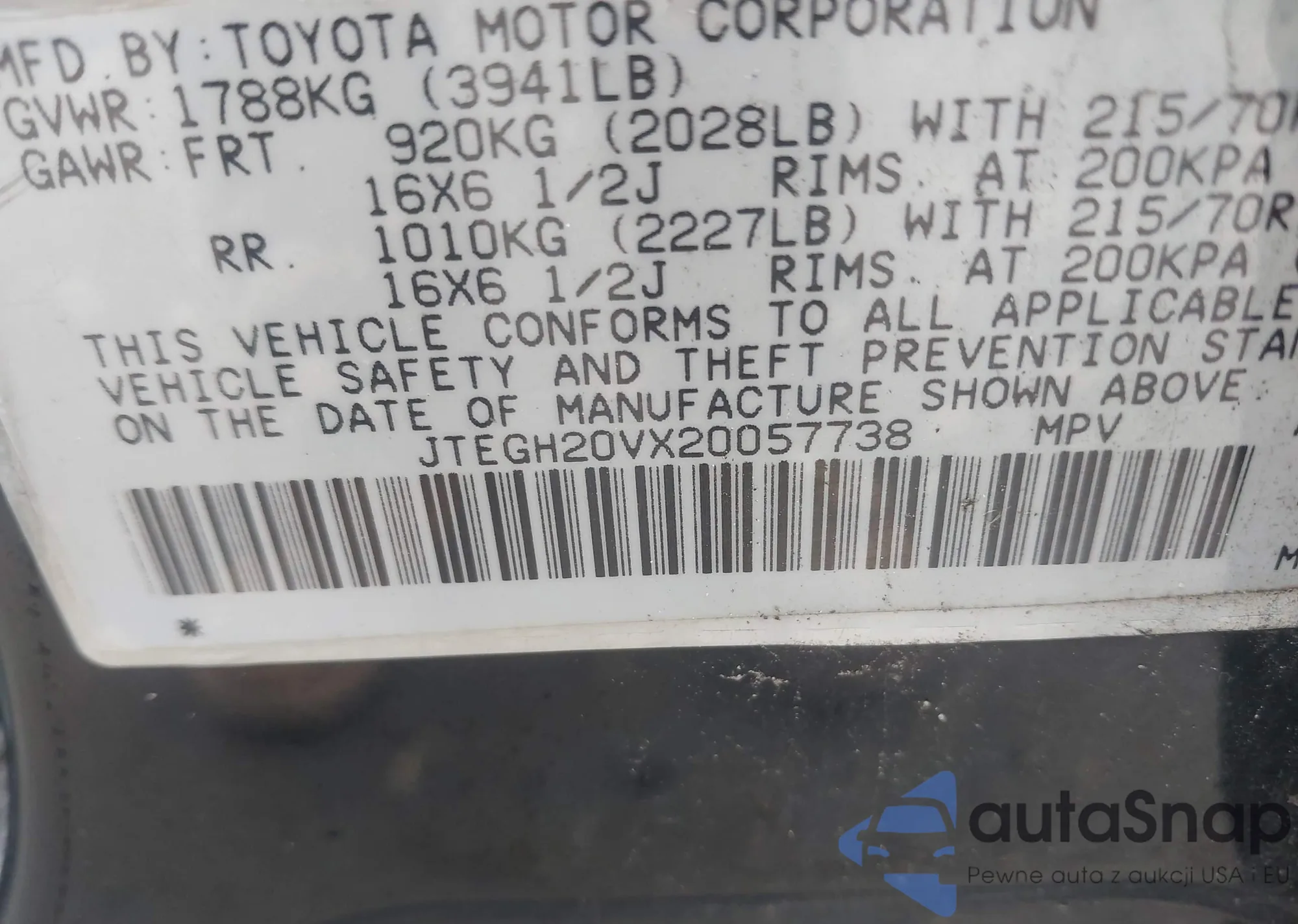 • VIN JTEGH20VX20057738