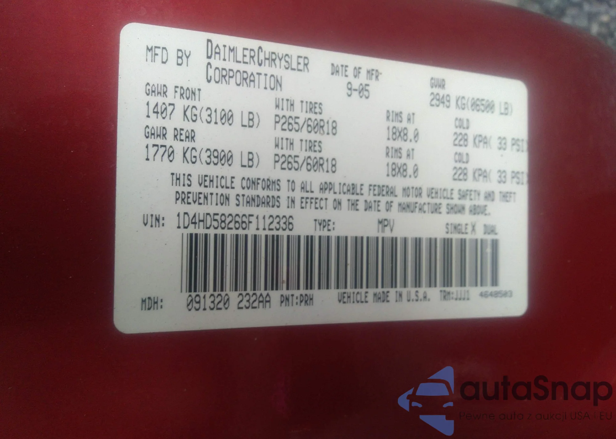 • VIN 1D4HD58266F112336