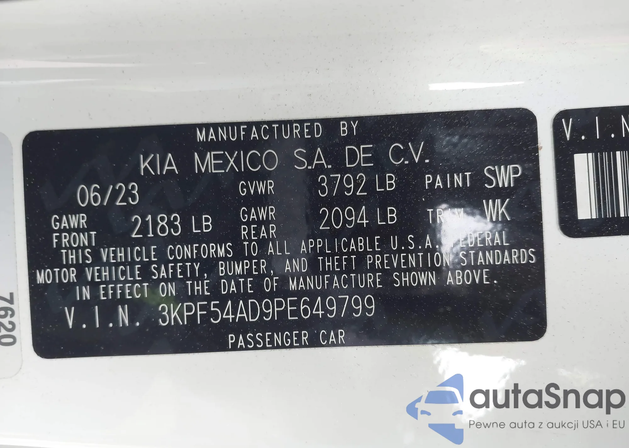 • VIN 3KPF54AD9PE649799