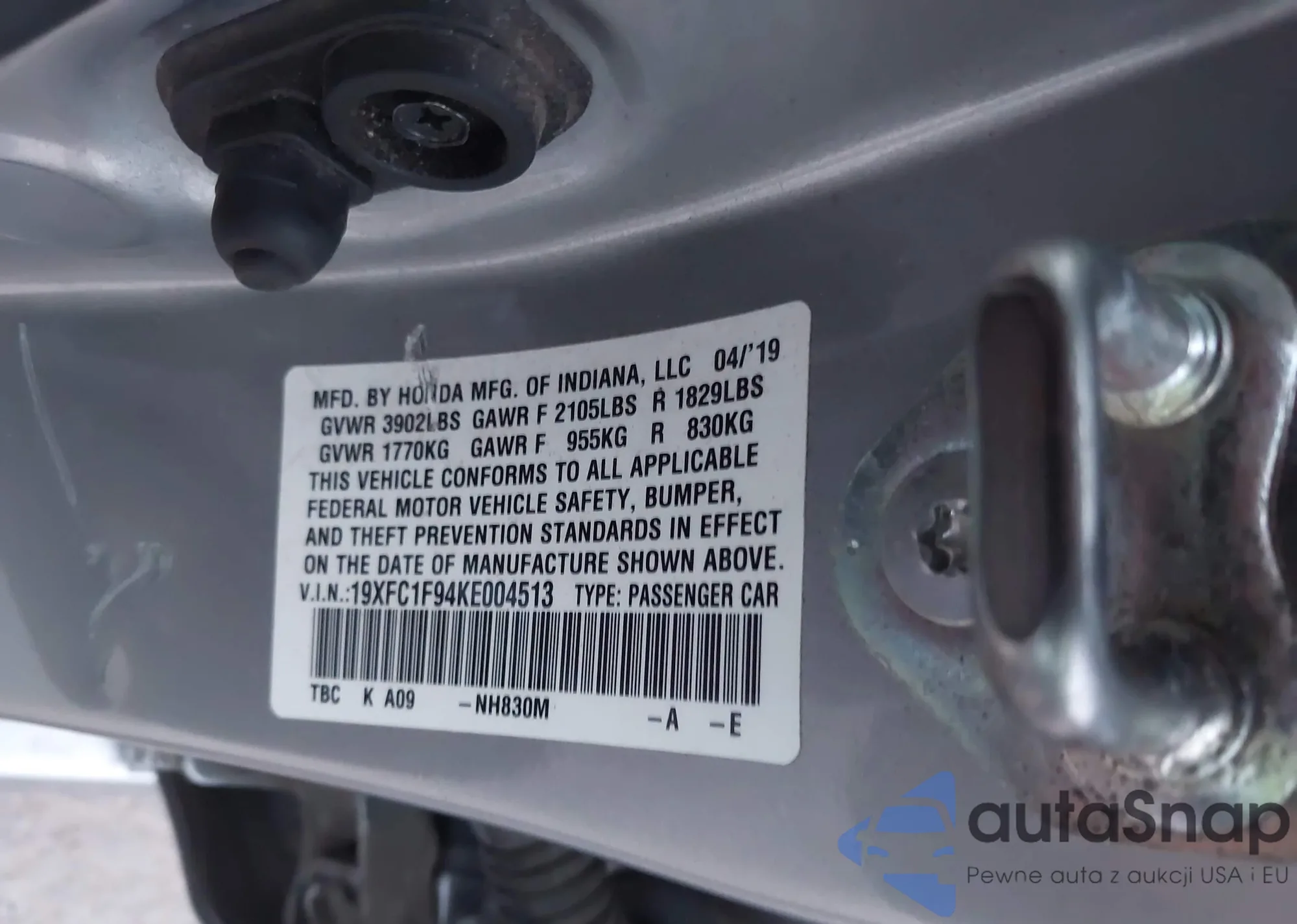 • VIN 19XFC1F94KE004513