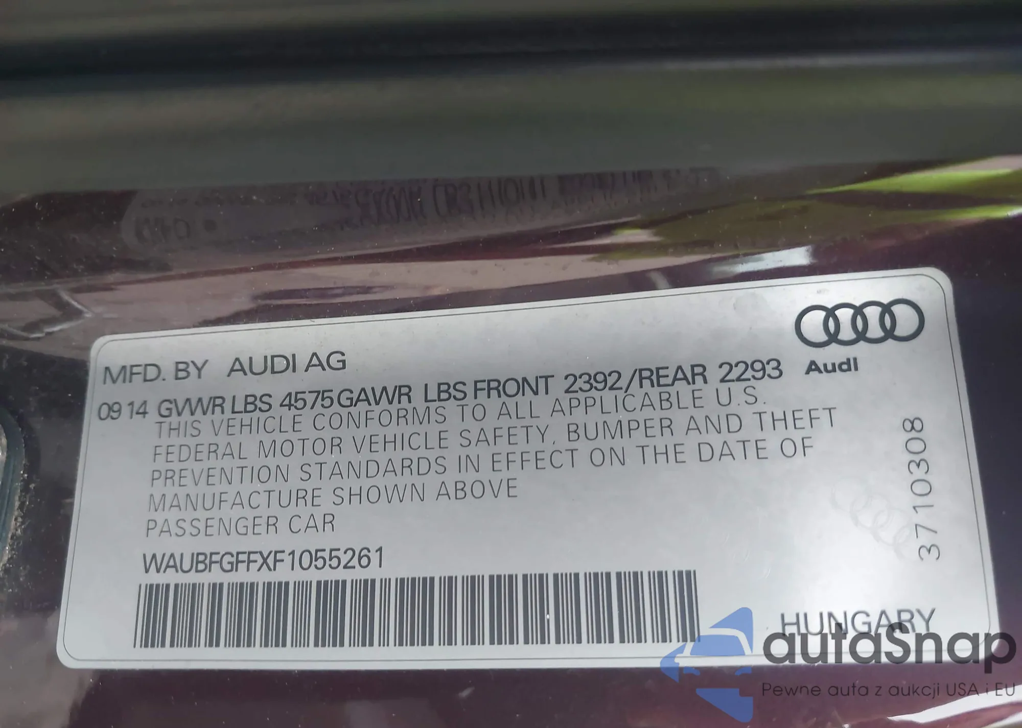 • VIN WAUBFGFFXF1055261