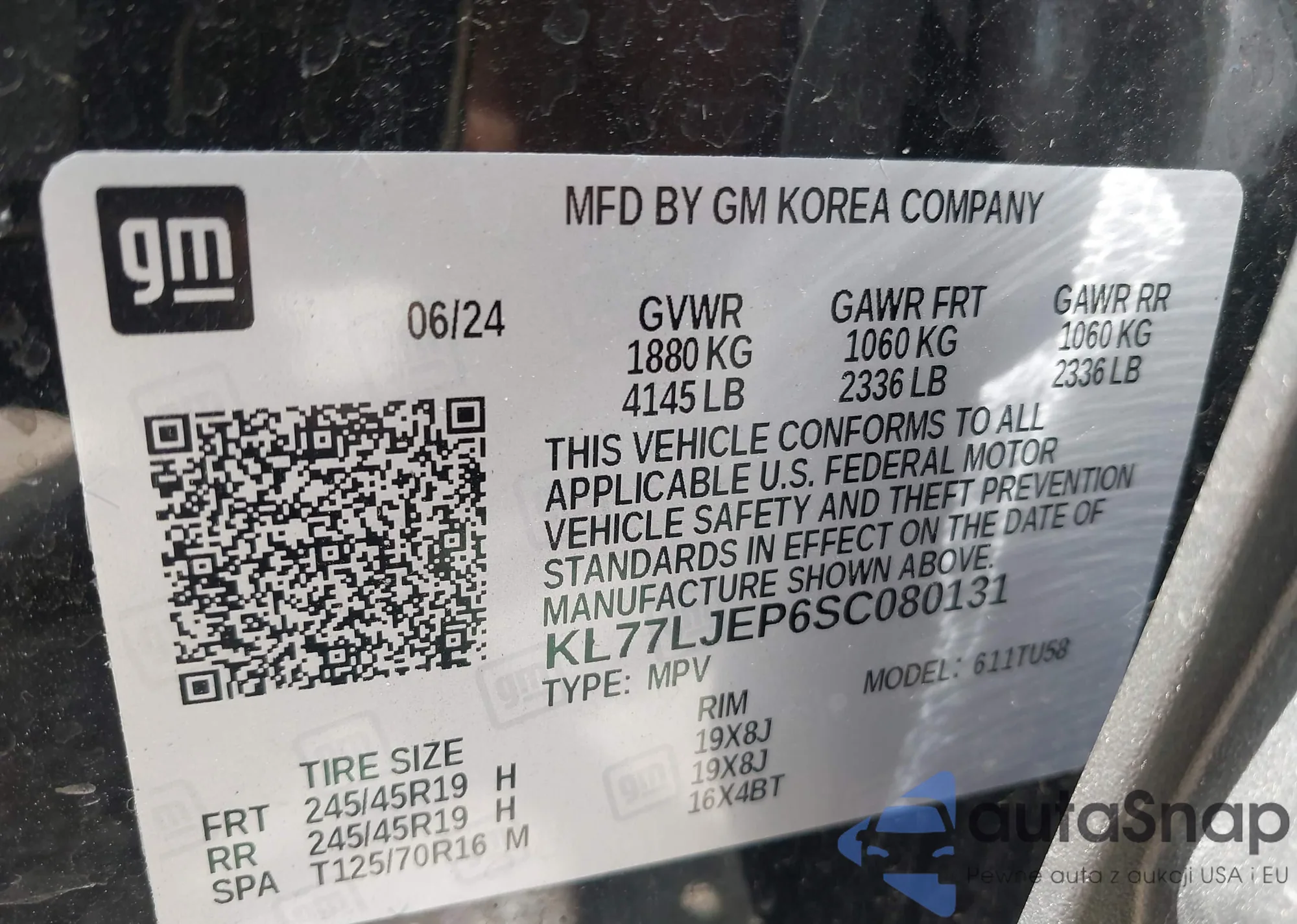 • VIN KL77LJEP6SC080131