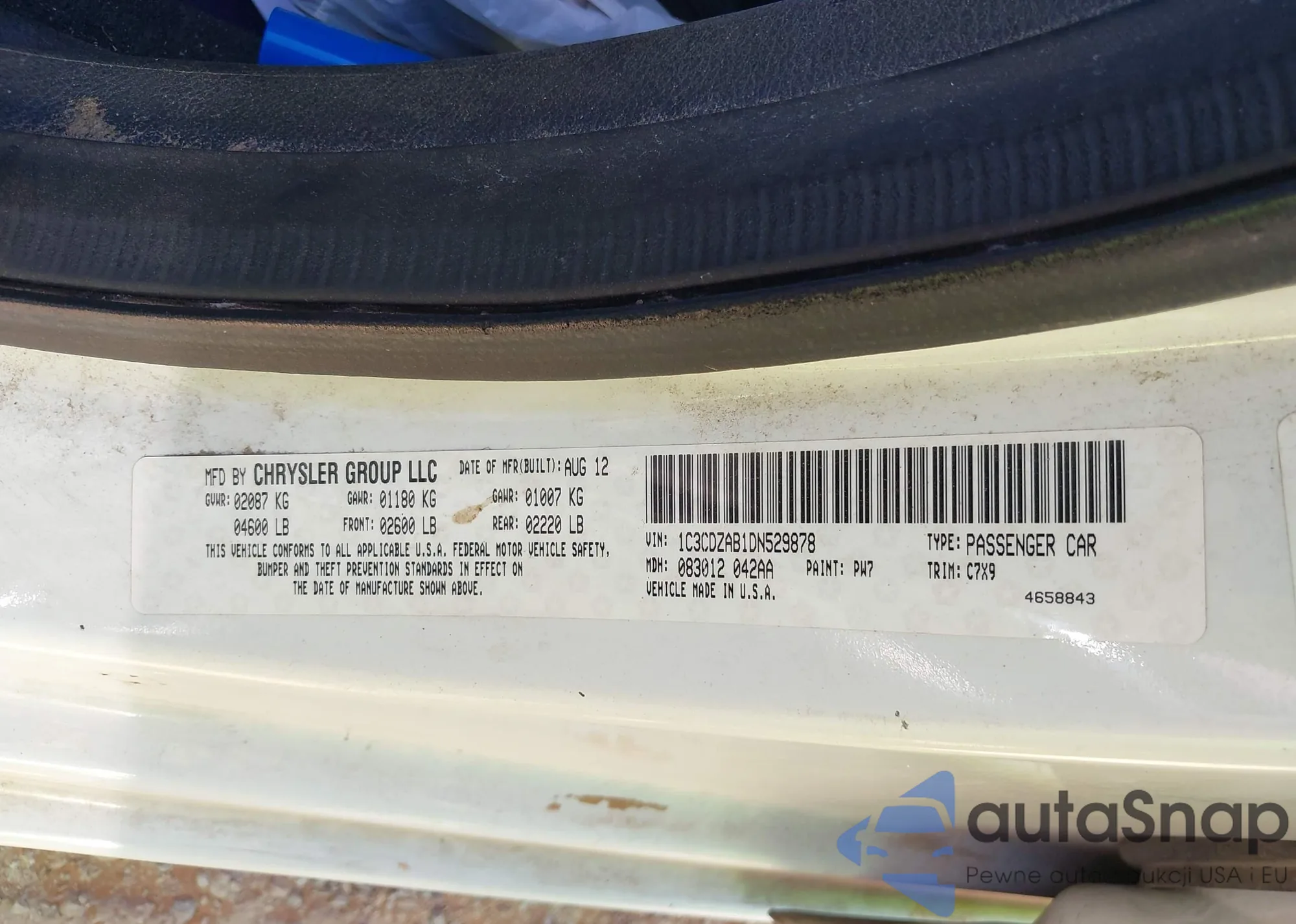 LOT: 42014971 VIN: 1C3CDZAB1DN529878