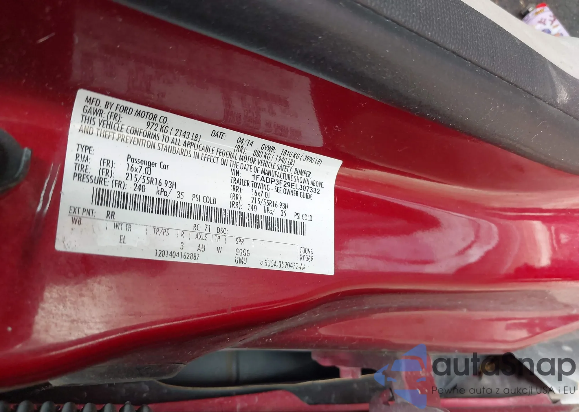 LOT: 42122175 VIN: 1FADP3F29EL307332