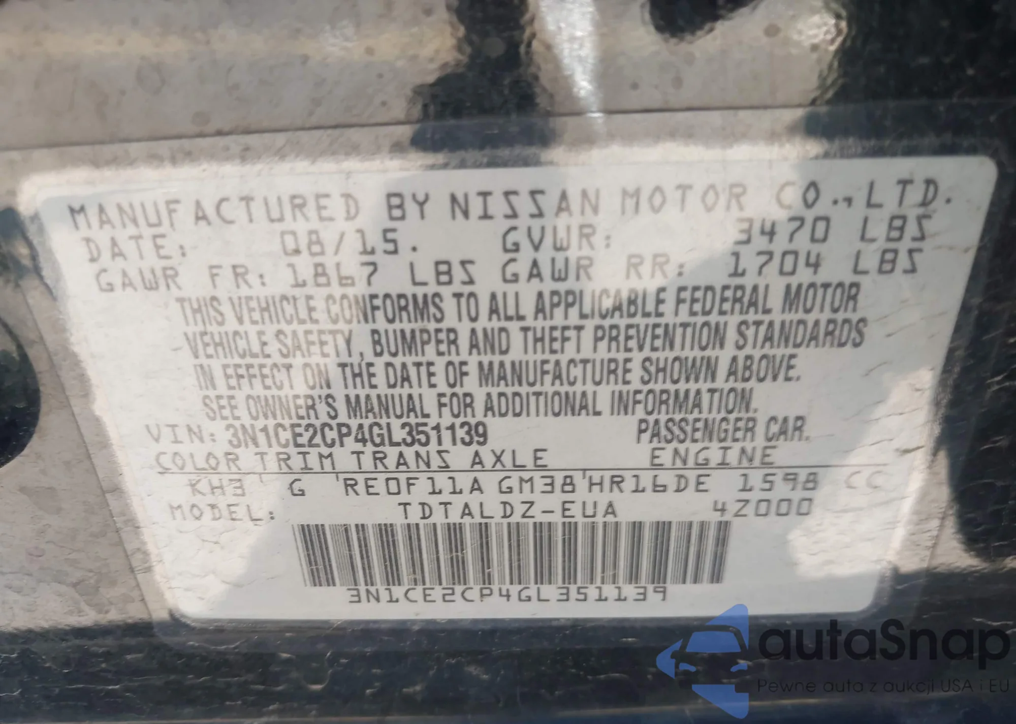 • VIN 3N1CE2CP4GL351139