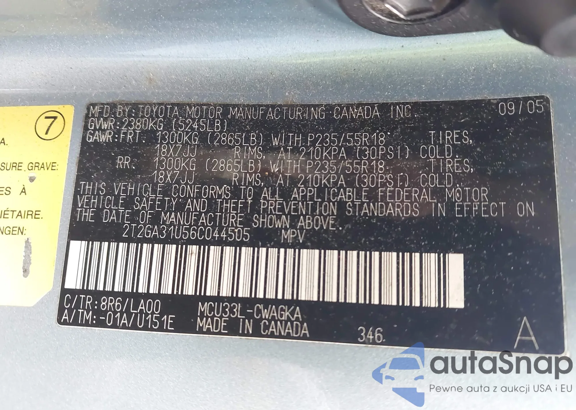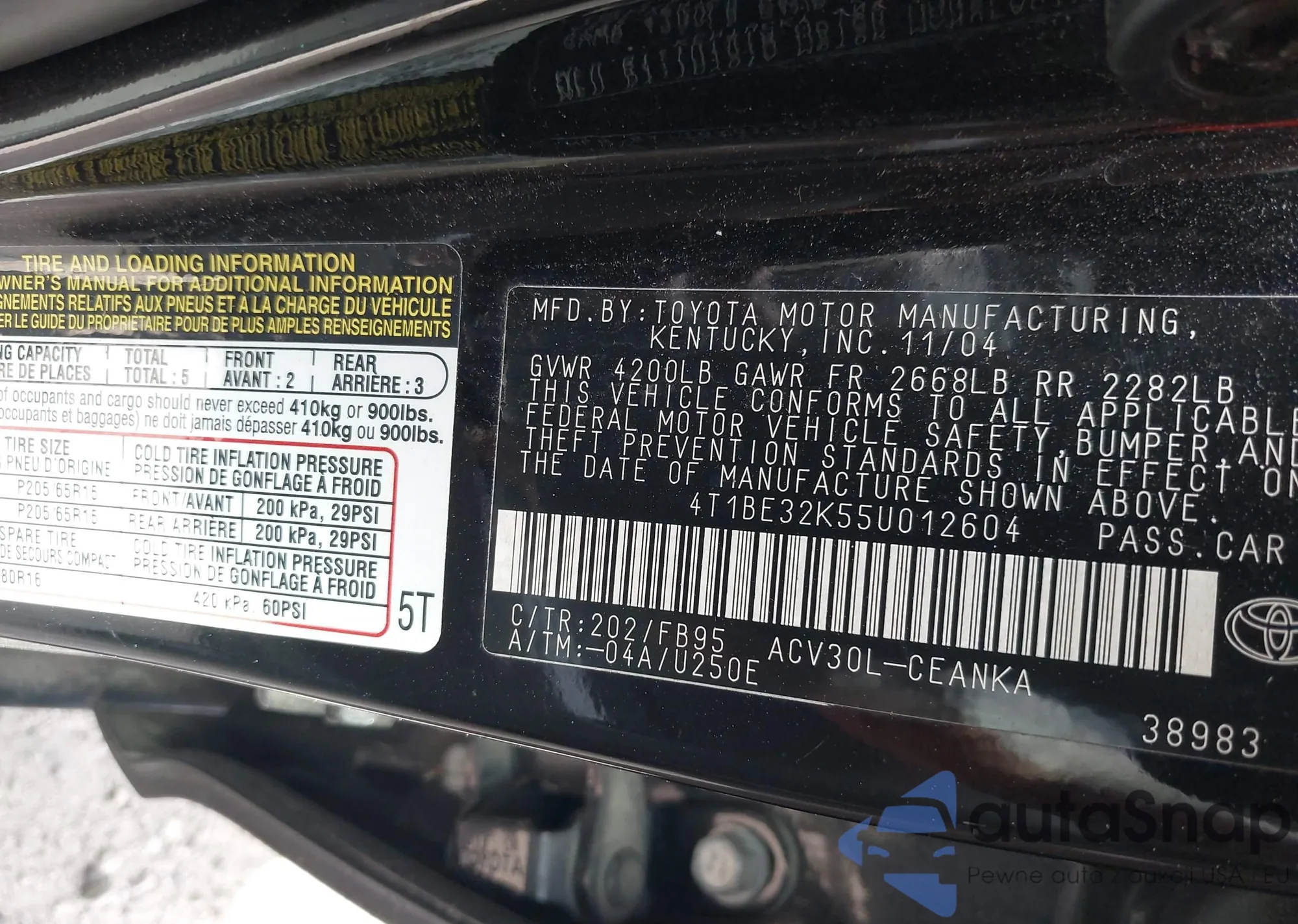 • VIN 4T1BE32K55U012604