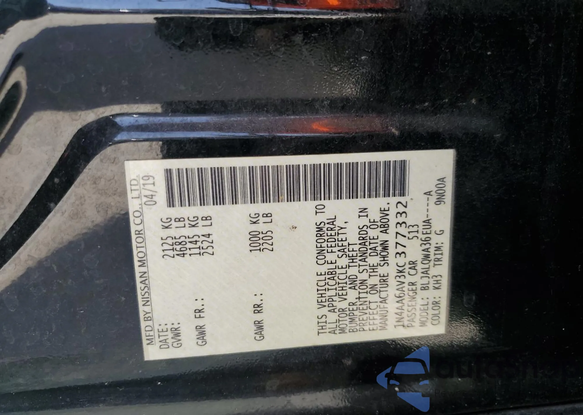 • VIN 1N4AA6AV3KC377332