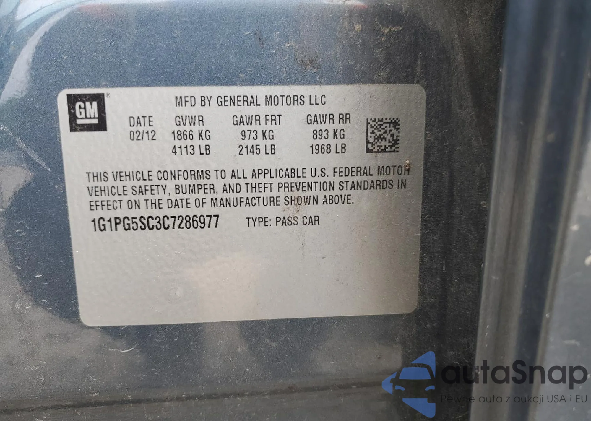 • VIN 1G1PG5SC3C7286977