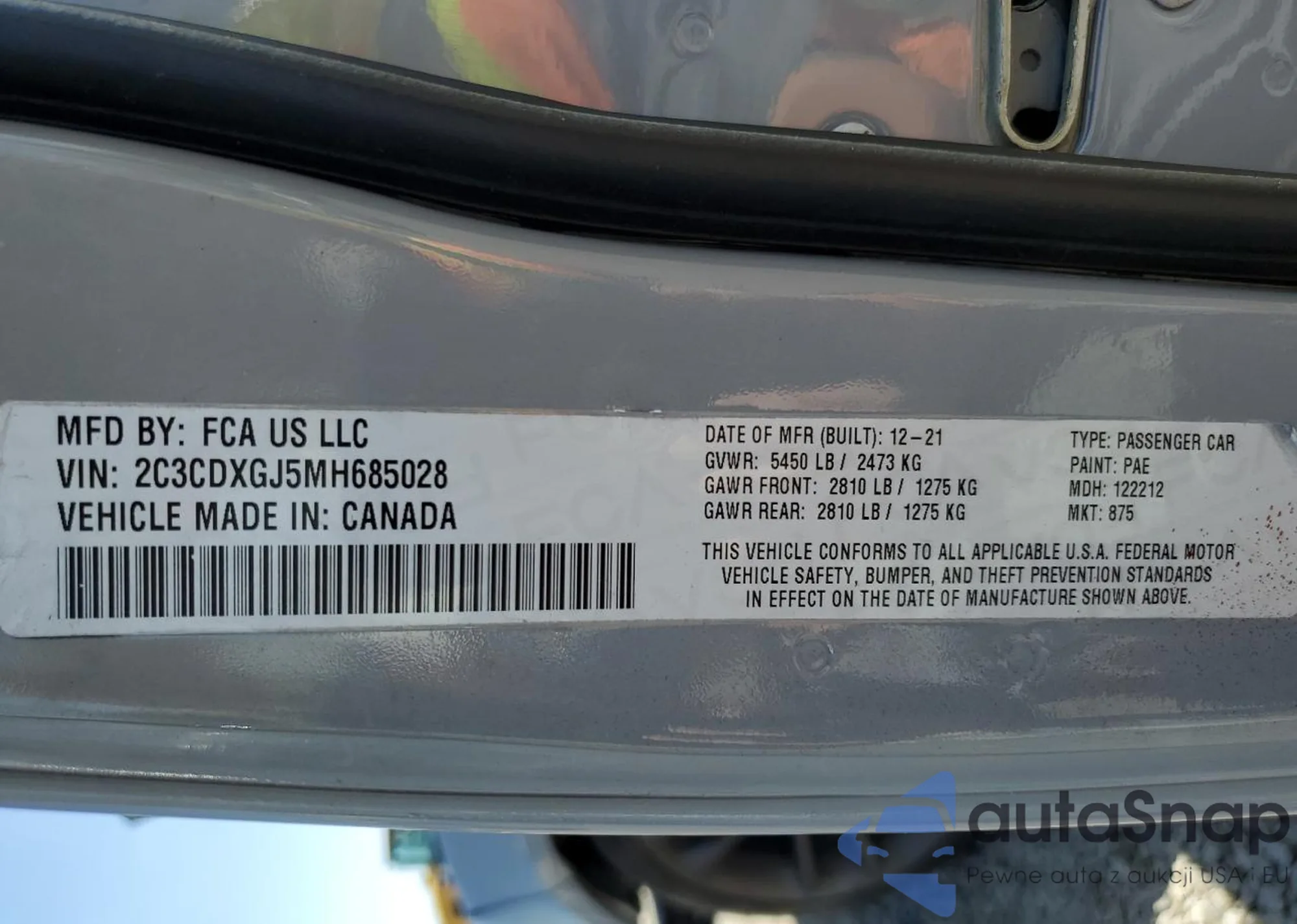 • VIN 2C3CDXGJ5MH685028