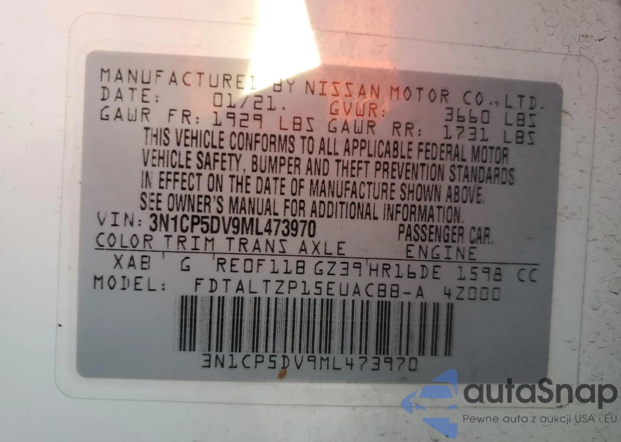 • VIN 3N1CP5DV9ML473970
