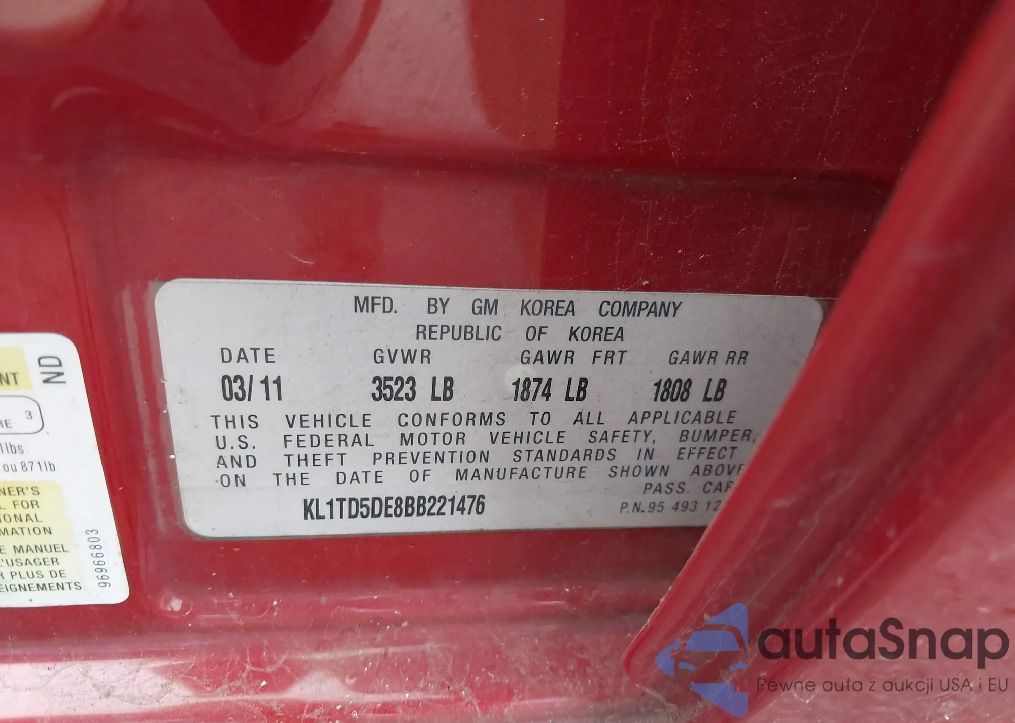 • VIN KL1TD5DE8BB221476