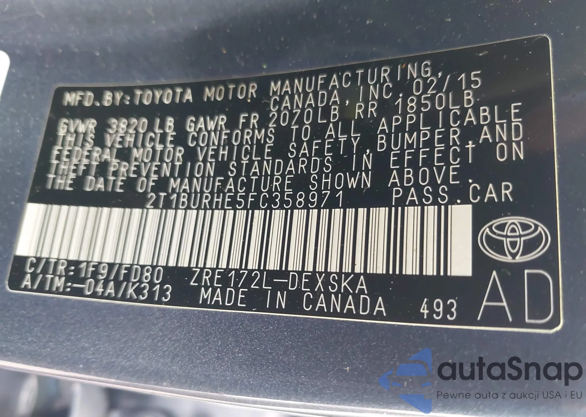 • VIN 2T1BURHE5FC358971
