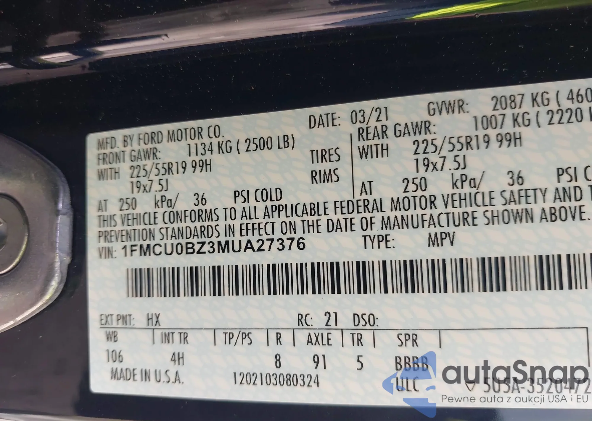 • VIN 1FMCU0BZ3MUA27376