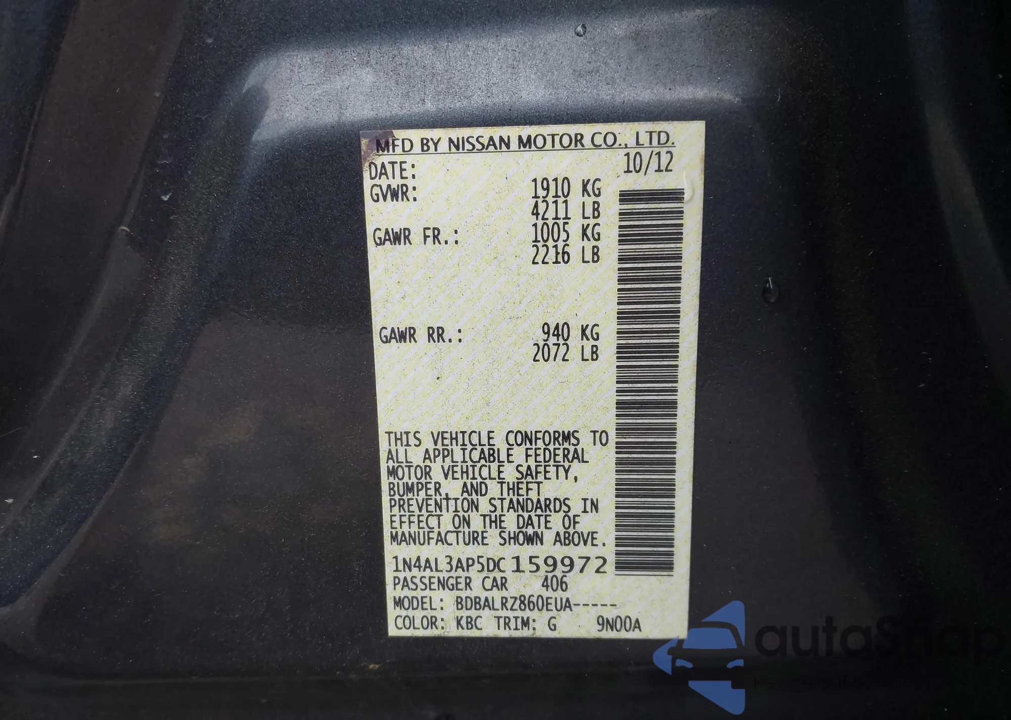 LOT: 41722061 VIN: 1N4AL3AP5DC159972
