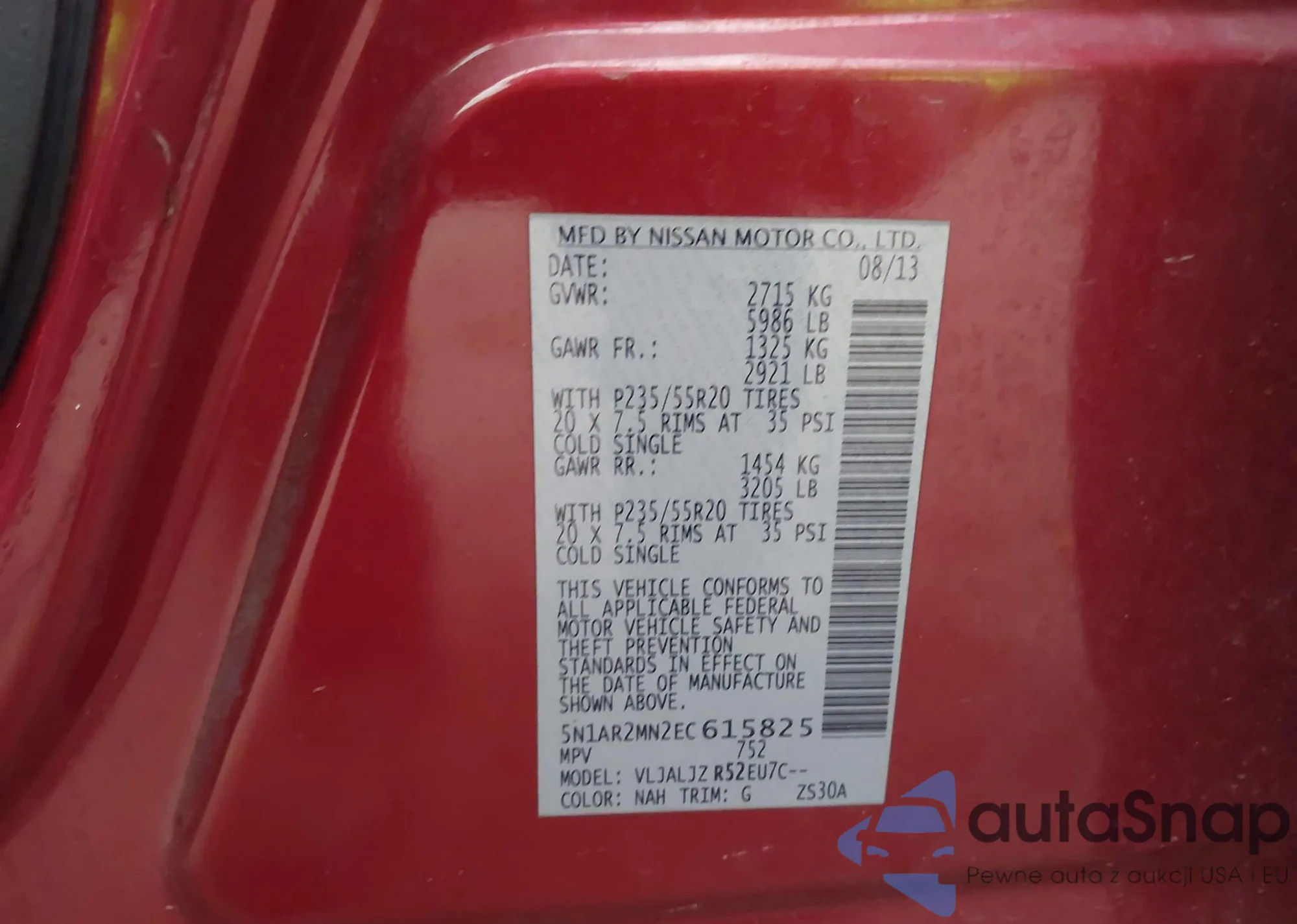LOT: 41920321 VIN: 5N1AR2MN2EC615825