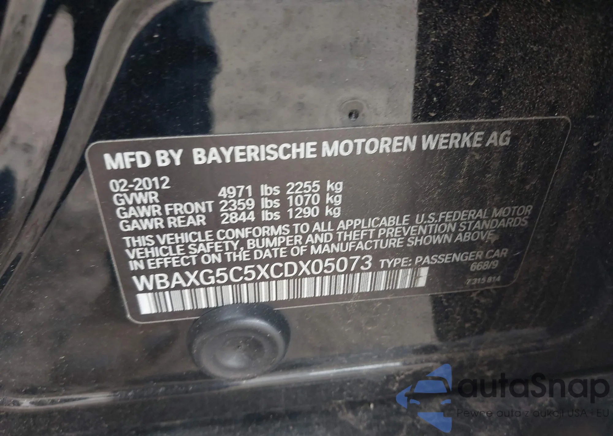 • VIN WBAXG5C5XCDX05073