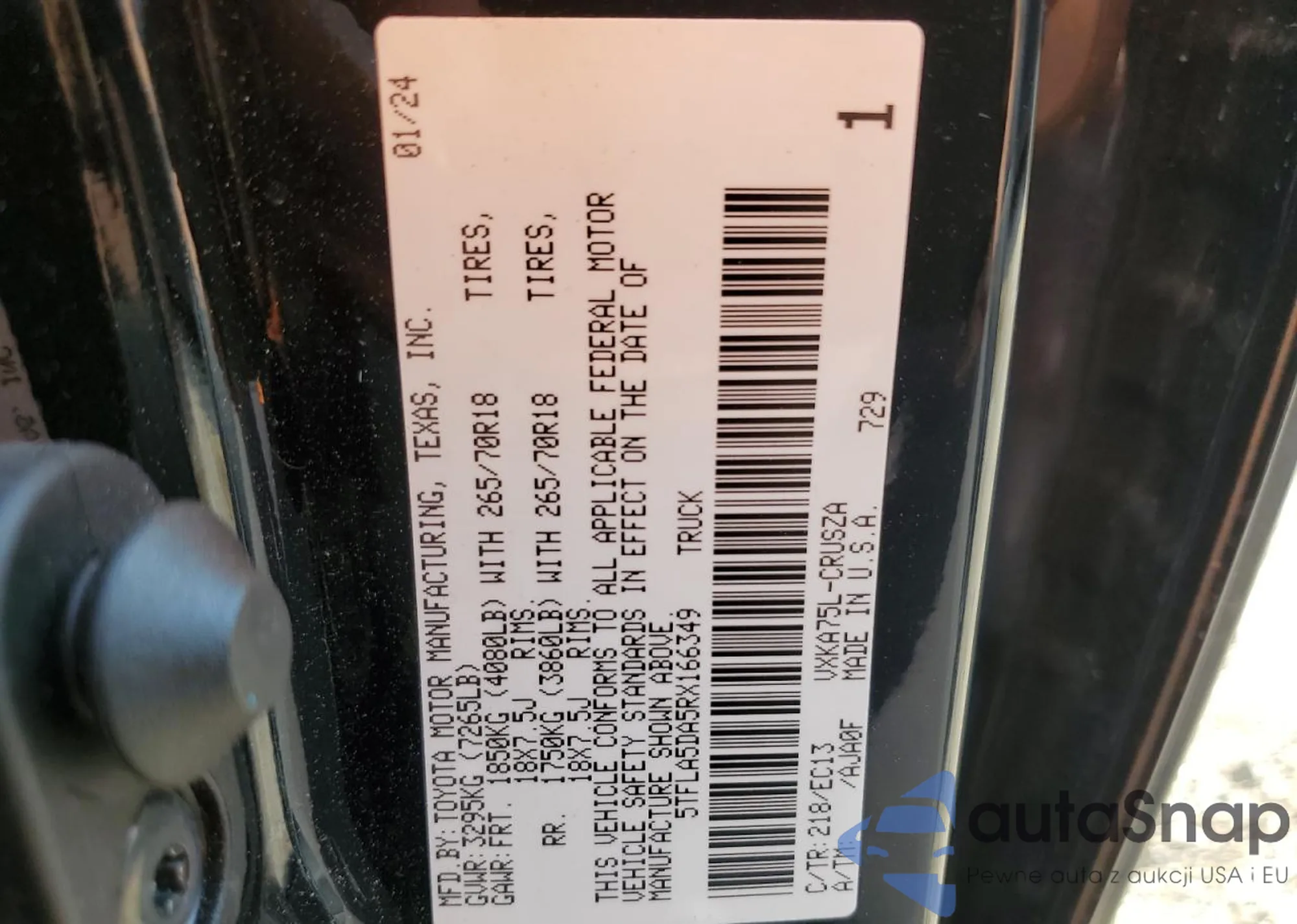 • VIN 5TFLA5DA5RX166349