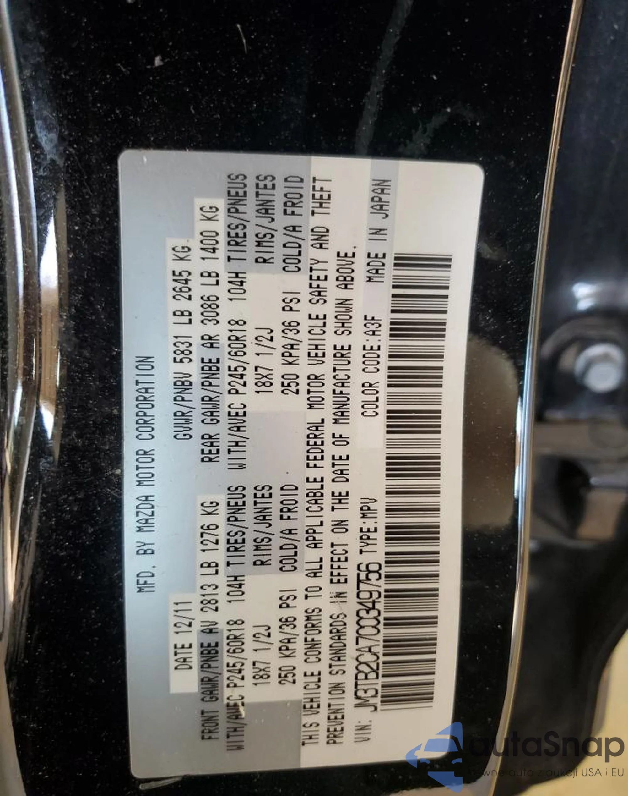 • VIN 3VWPP7AJ5DM648170