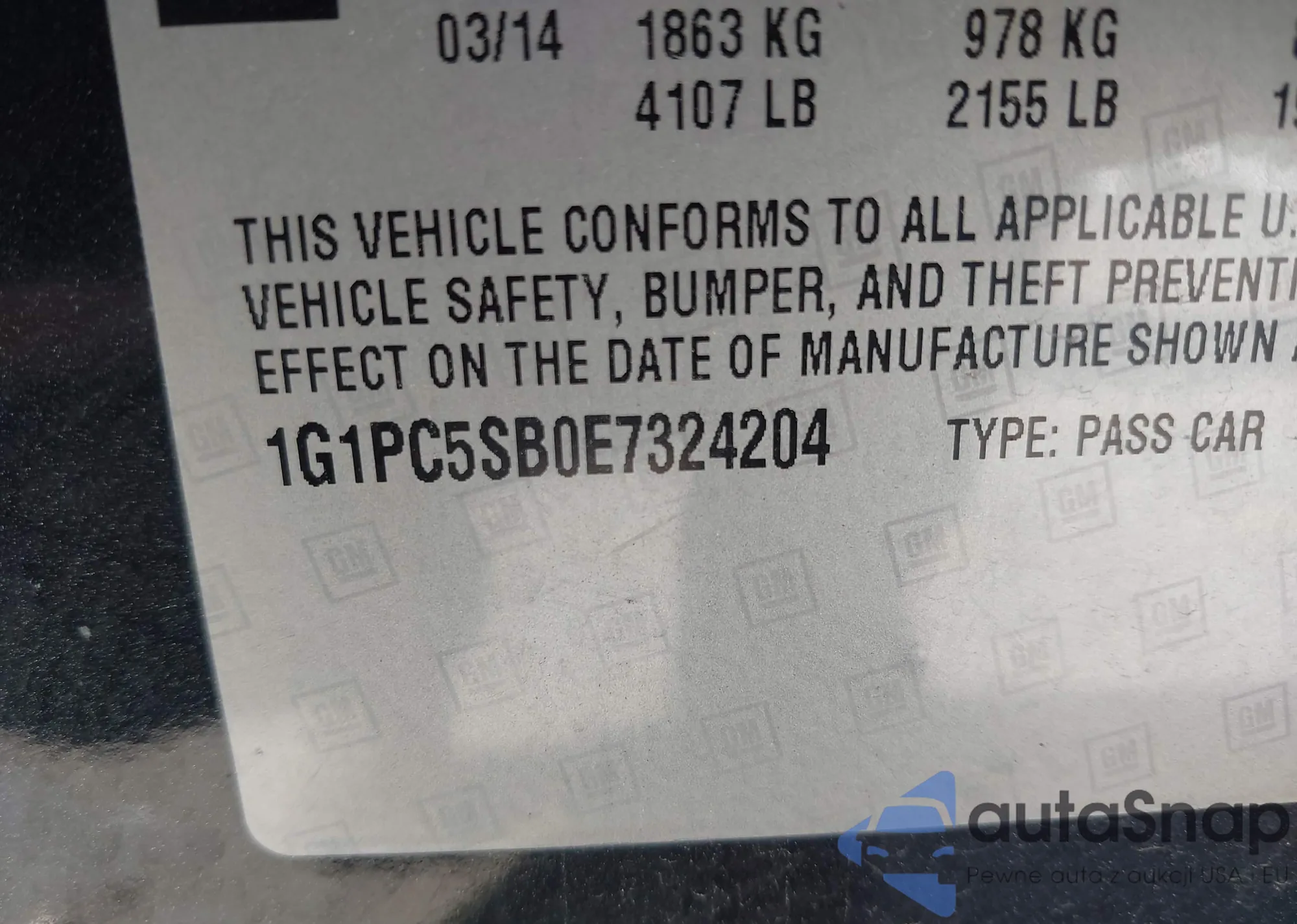 LOT: 39572840 VIN: 1G1PC5SB0E7324204