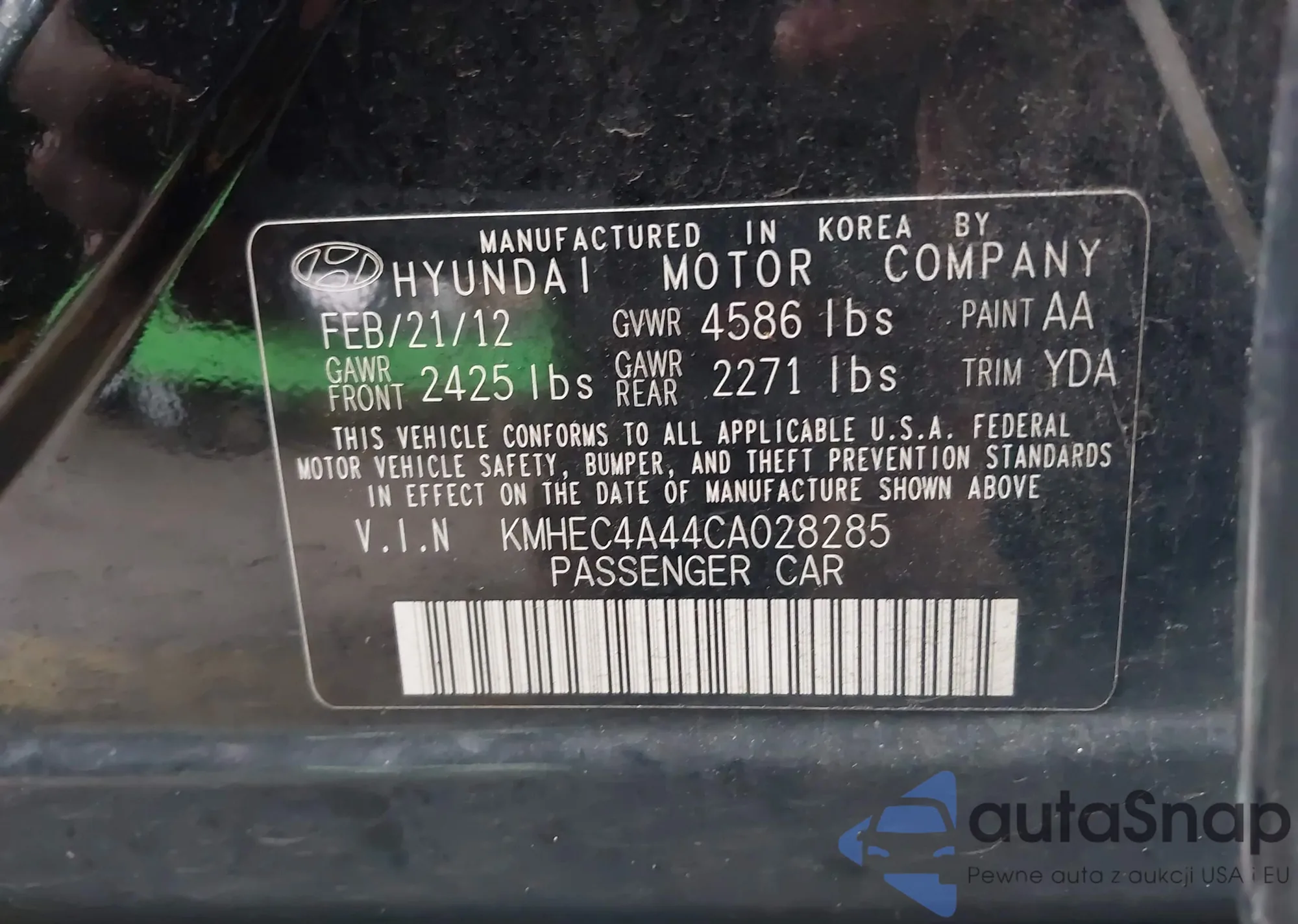 • VIN KMHEC4A44CA028285