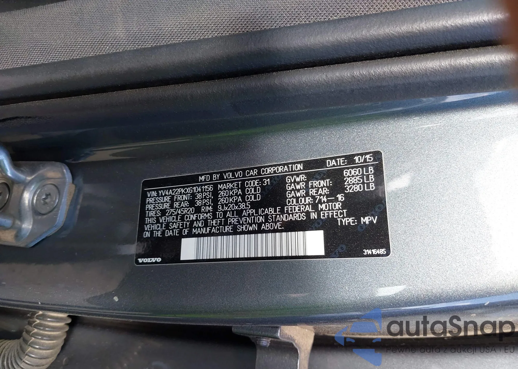 • VIN YV4A22PKXG1041156