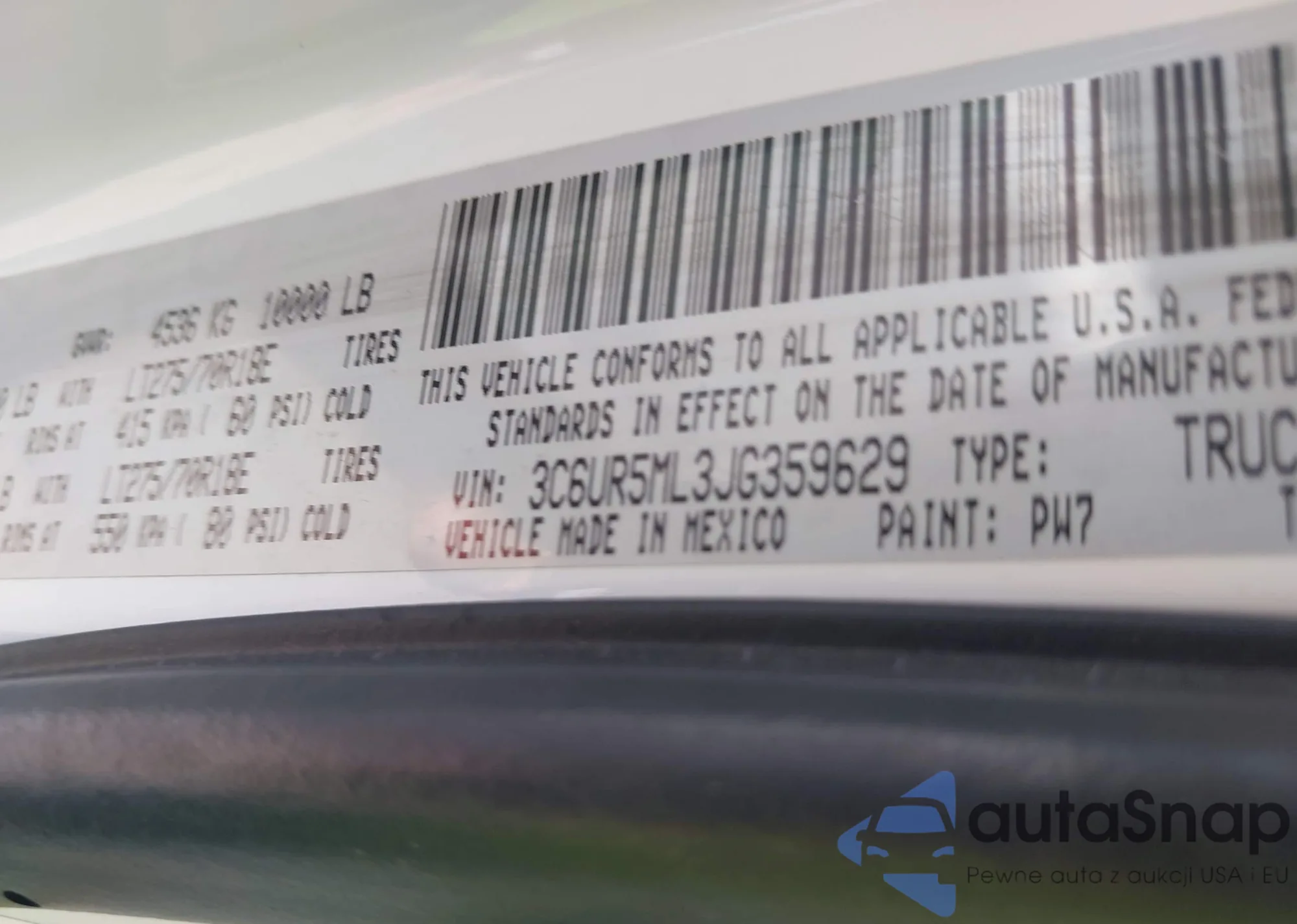 • VIN 3C6UR5ML3JG359629