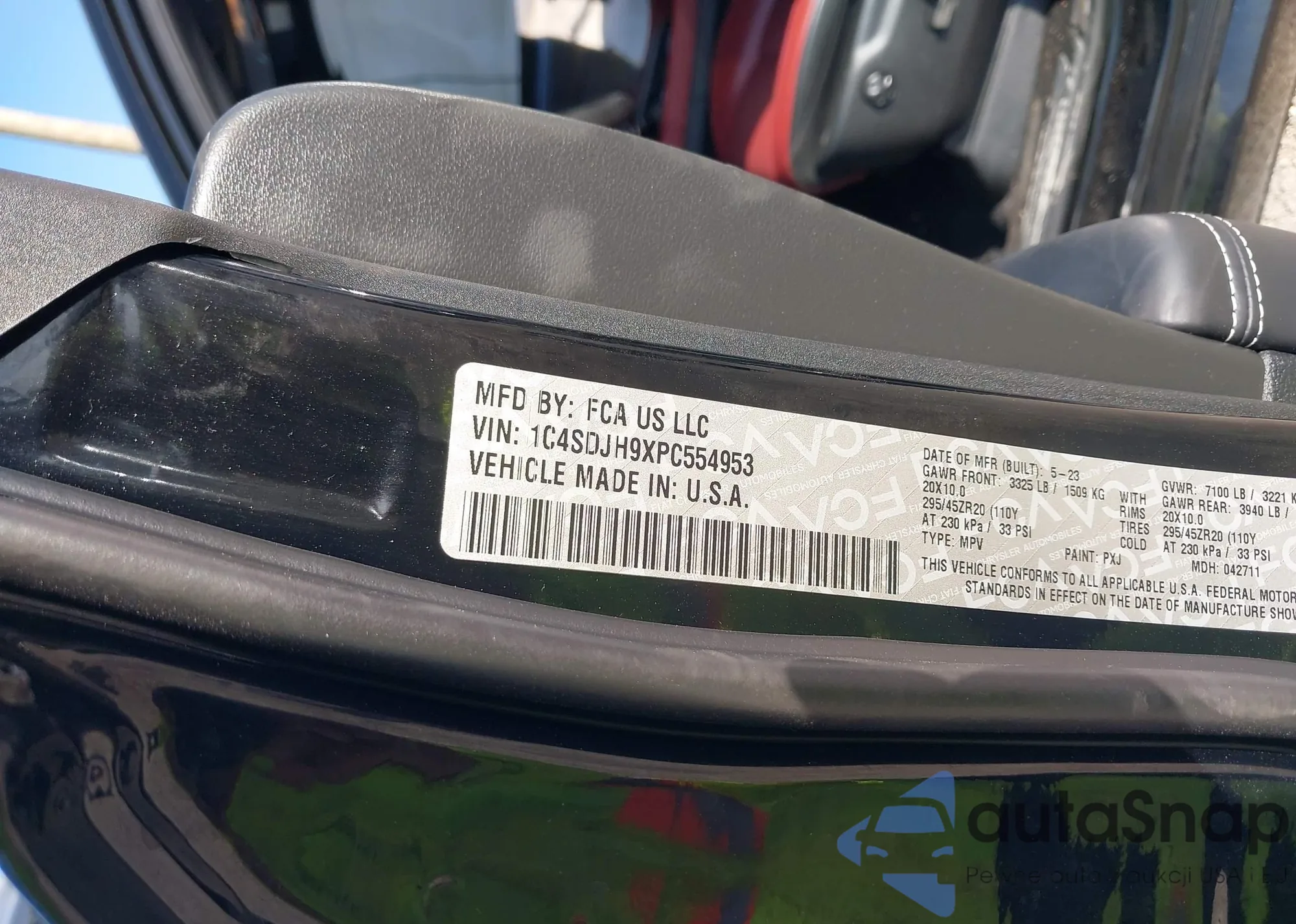 • VIN 1C4SDJH9XPC554953