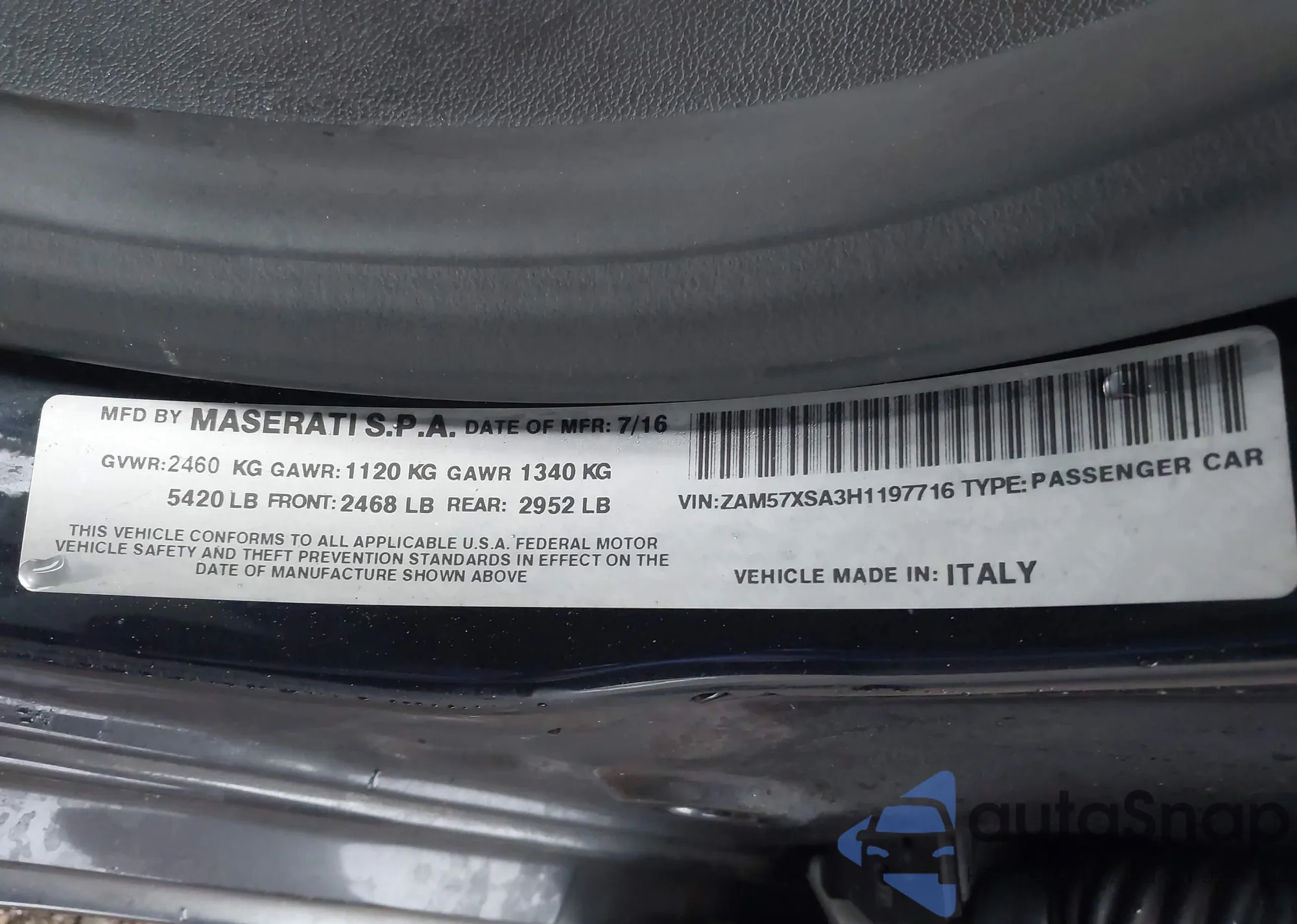 • VIN ZAM57XSA3H1197716