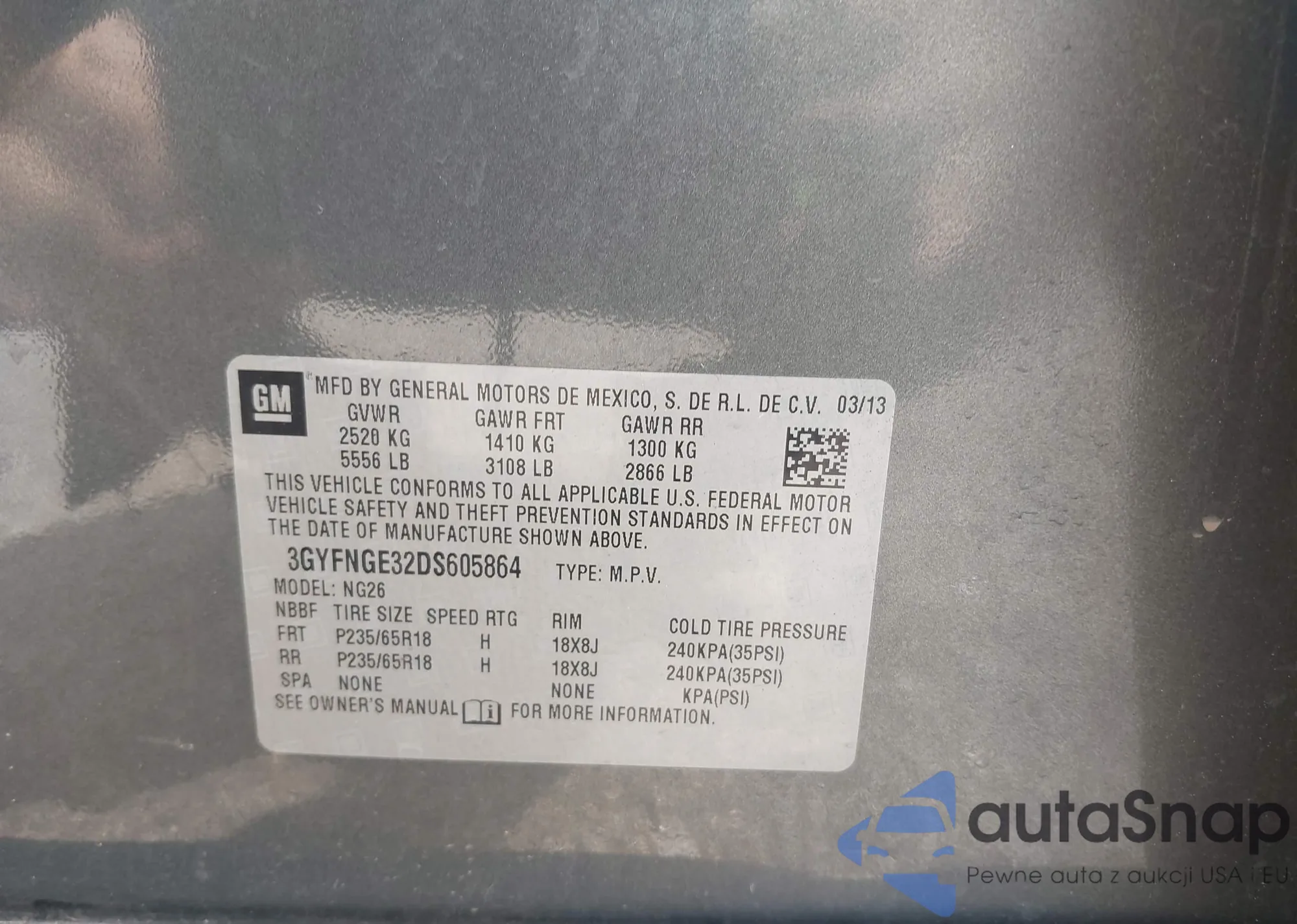 LOT: 42049798 VIN: 3GYFNGE32DS605864