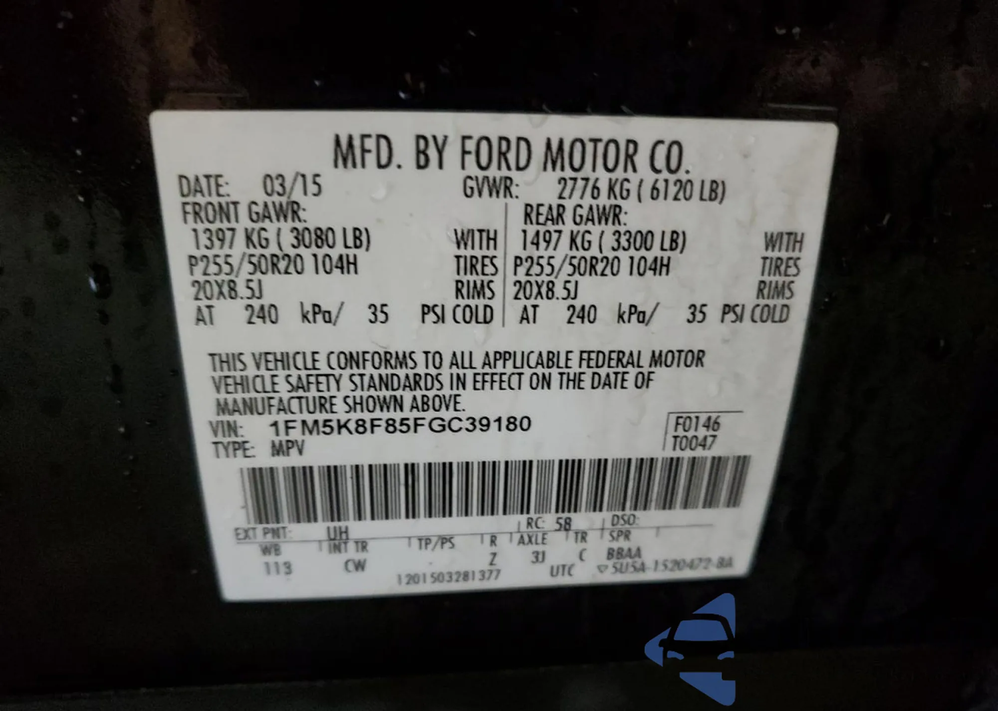 • VIN 1FM5K8F85FGC39180